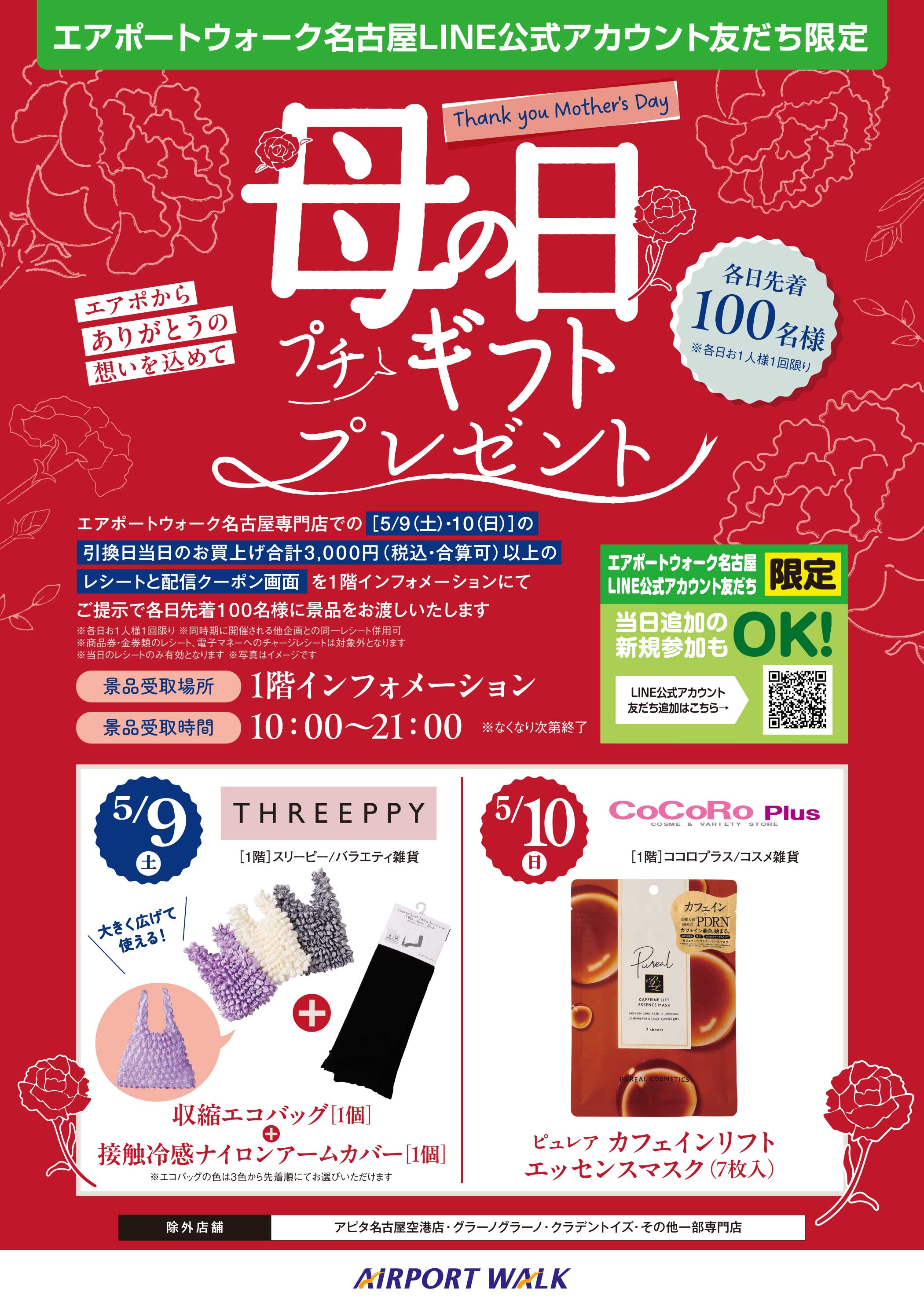 5月9日(土)・5月10日(日) ※各日先着100名様 ※各日お1人様1回限り10:00~21:00 ※なくなり次第終了