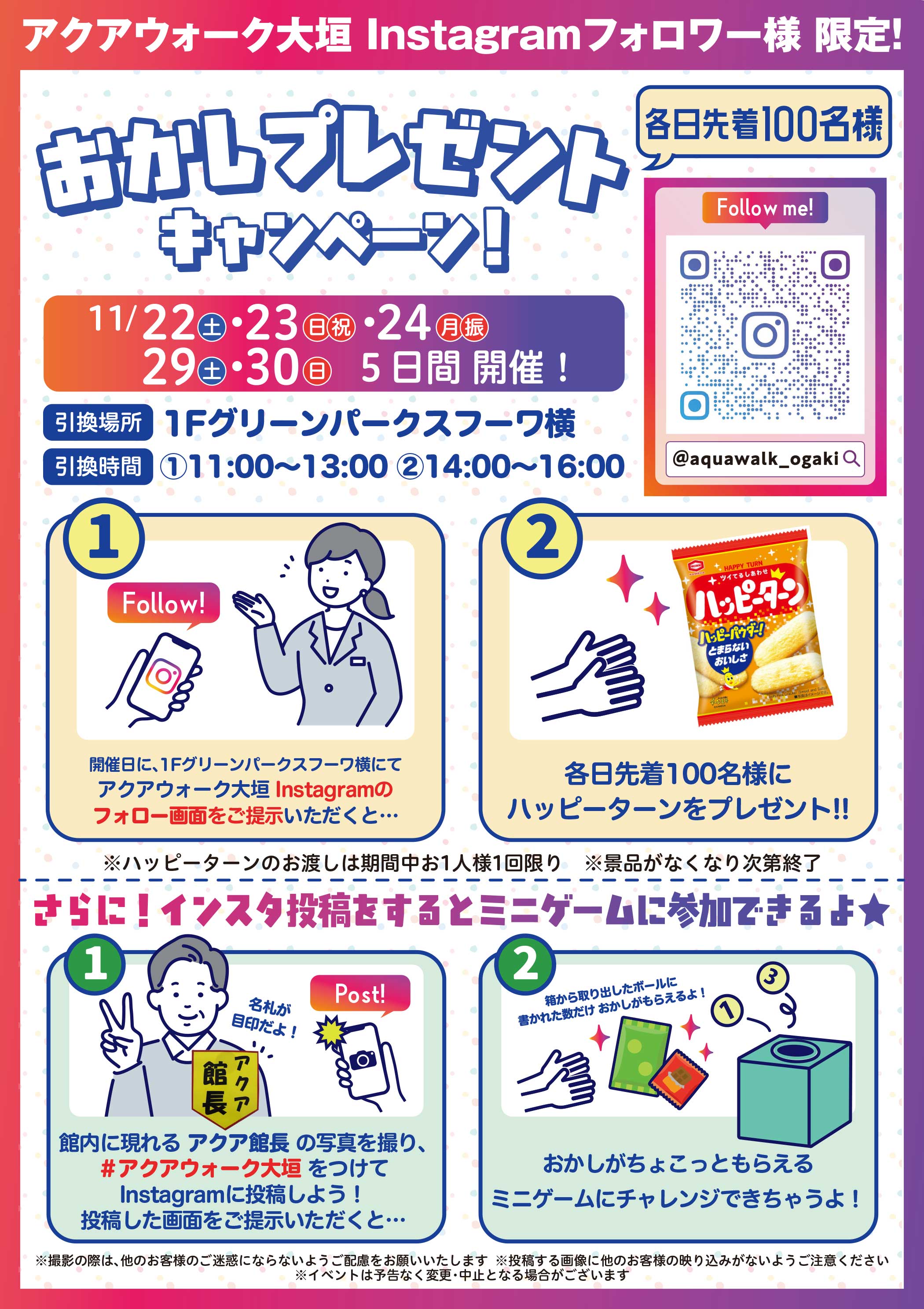 アクアウォーク大垣 Instagram フォロワー様 限定! おかしプレゼント キャンペーン!