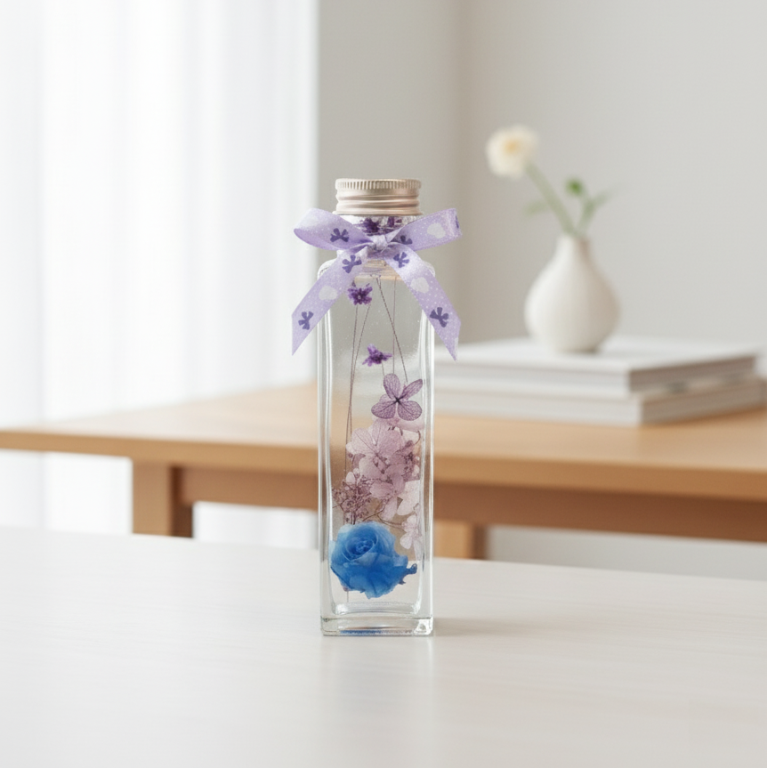 プリザーブドフラワーを使い、長く美しさを保てる「スワッグ」または「ハーバリウム」をお作りいただけます。