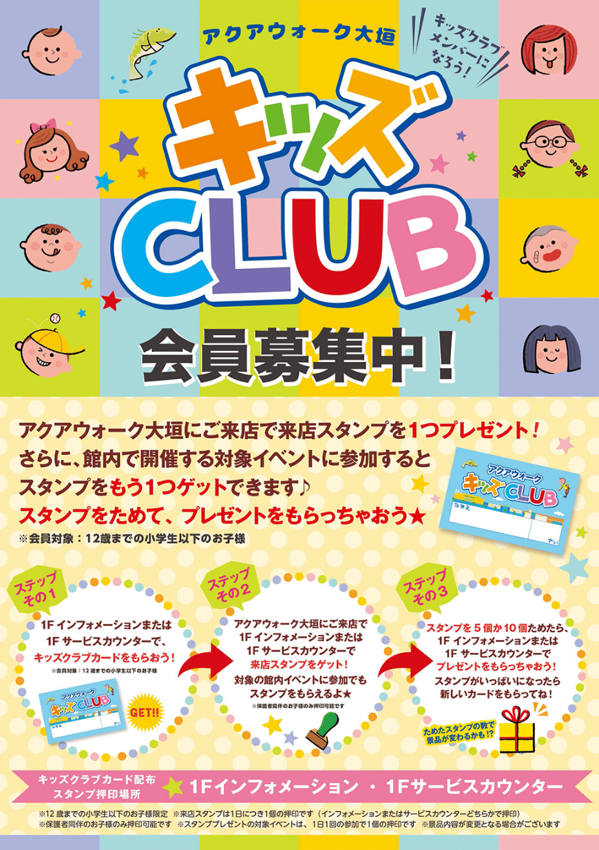 アクアウォーク大垣キッズクラブは、12歳(小学生までのお子様)までのお子様が入会できるカードです。