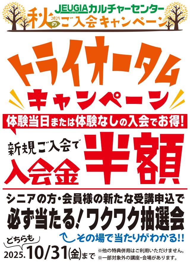 秋の入会キャンペーン 新規ご入会で『入会金半額』お申し込み受付中!!