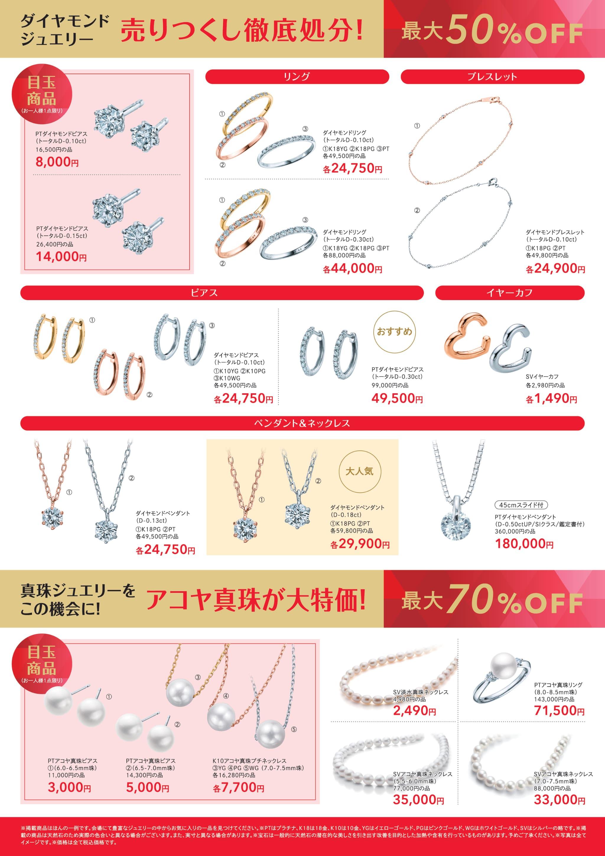 ダイヤモンドジュエリー最大50%OFFの売り尽くし徹底処分にアコヤ真珠も最大70%OFFの大特価!