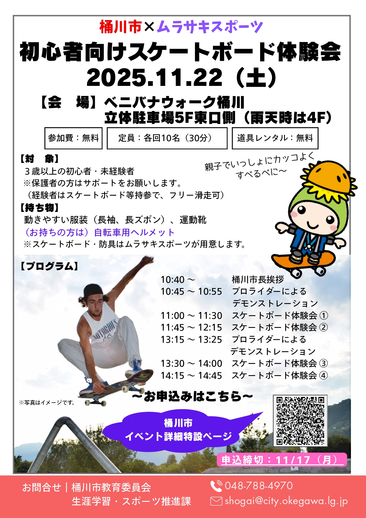 親子でいっしょにカッコよく!初心者向けスケートボード体験会