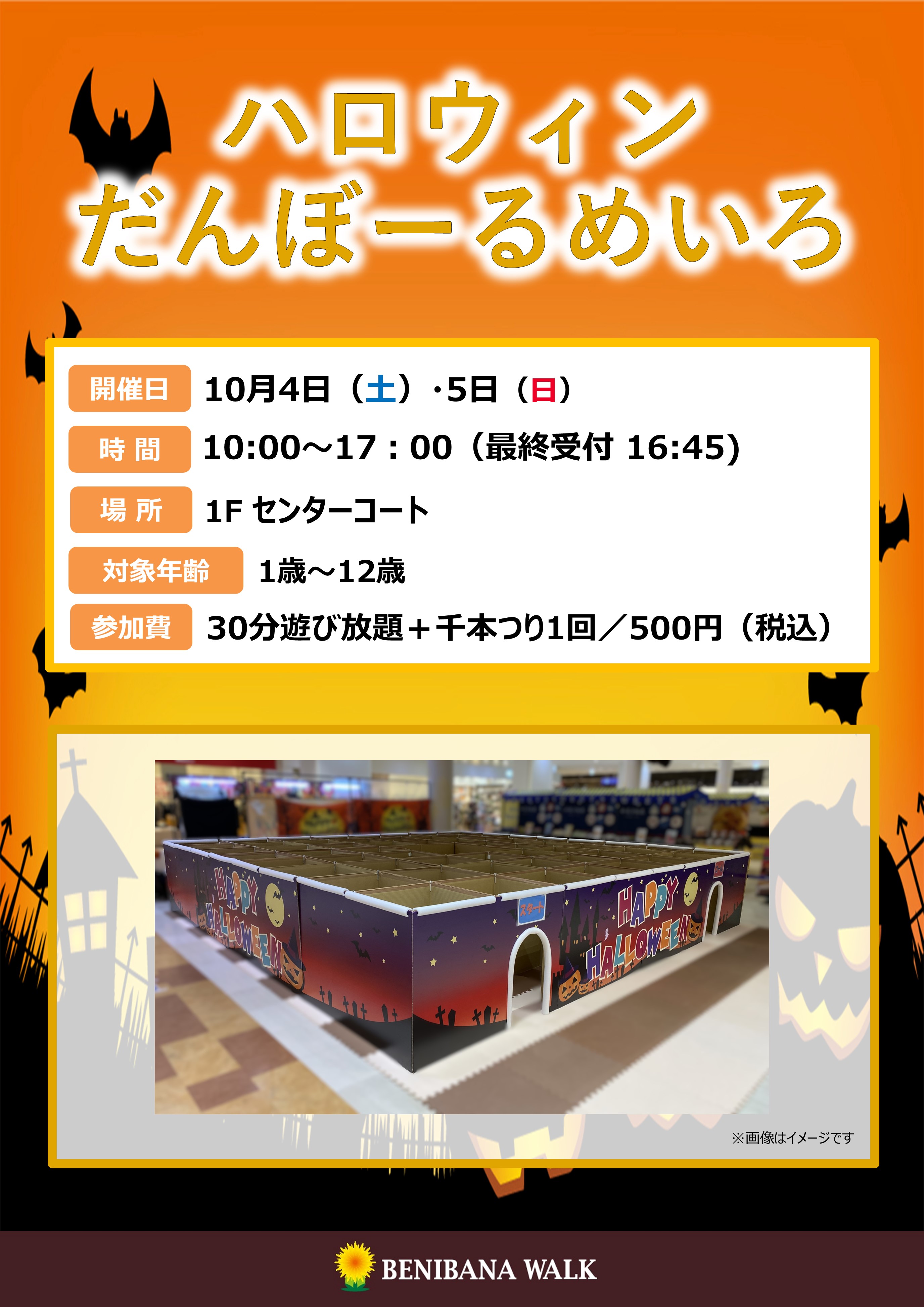 ベニバナウォークに、子どもたちに大人気の「ハロウィンだんぼーるめいろ」が登場します!
