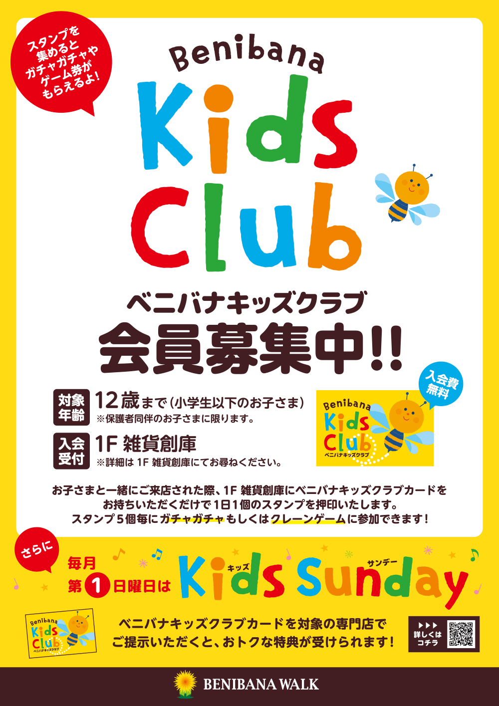 毎月第1日曜日はキッズサンデー!特典対象店舗でオトクに買い物をしていただけます。