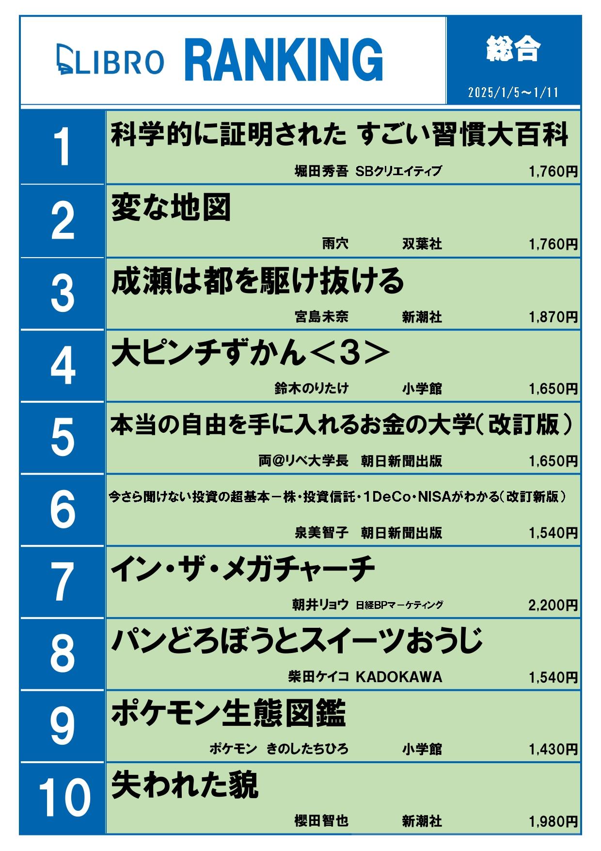 リブロ週間ランキング