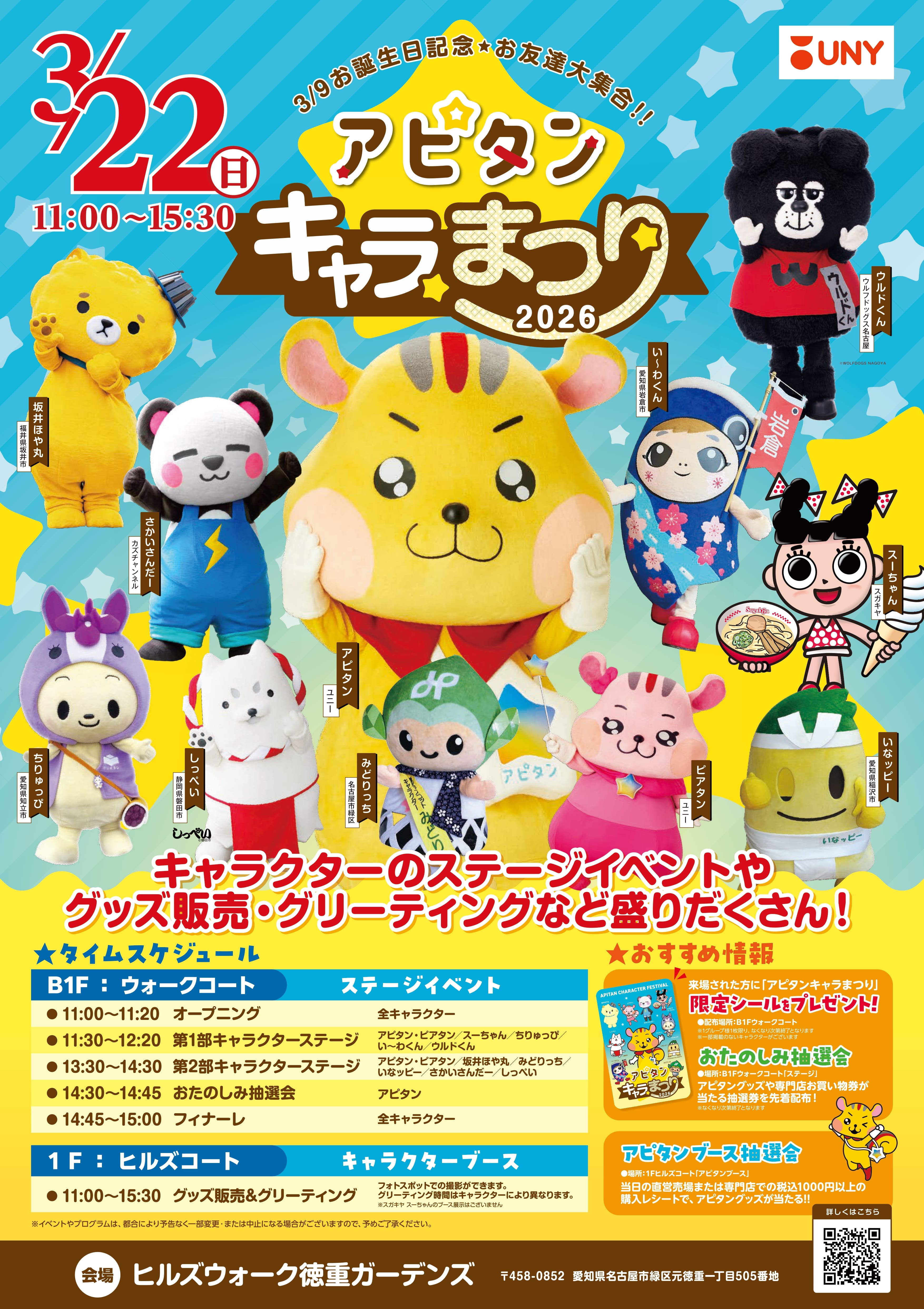3/9お誕生日記念お友達大集合!!アピタンキャラまつり