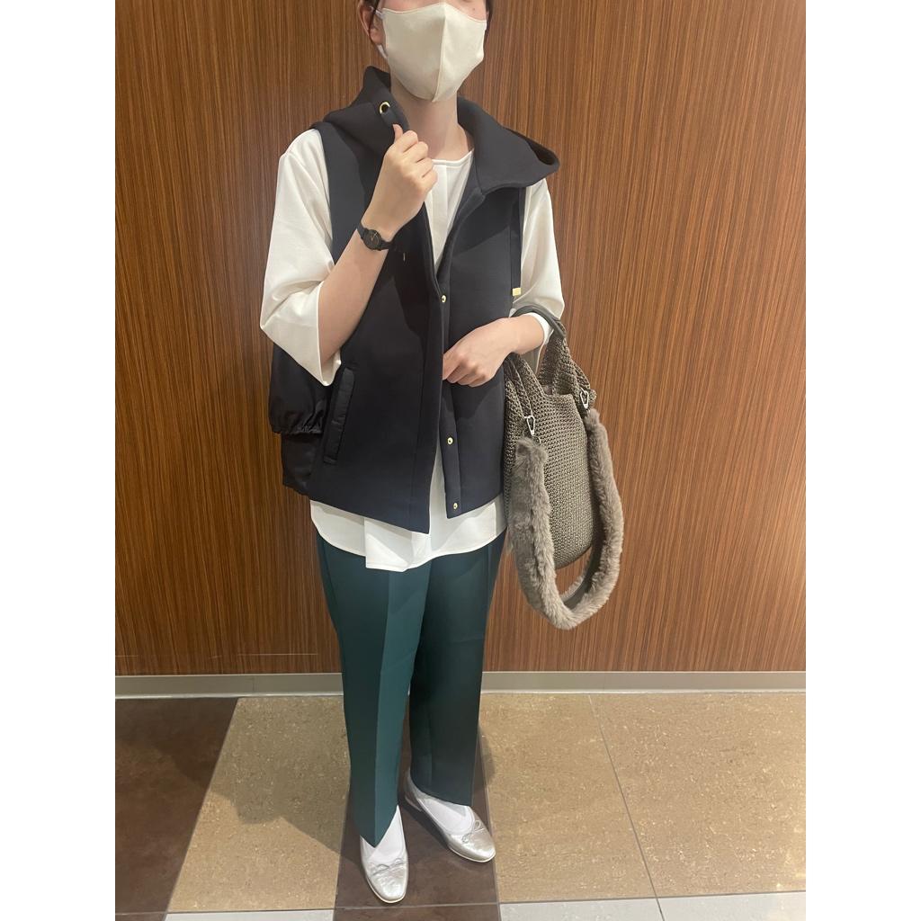 トップスの上にベストを重ねるだけで、こなれ感のある着こなしに◎
