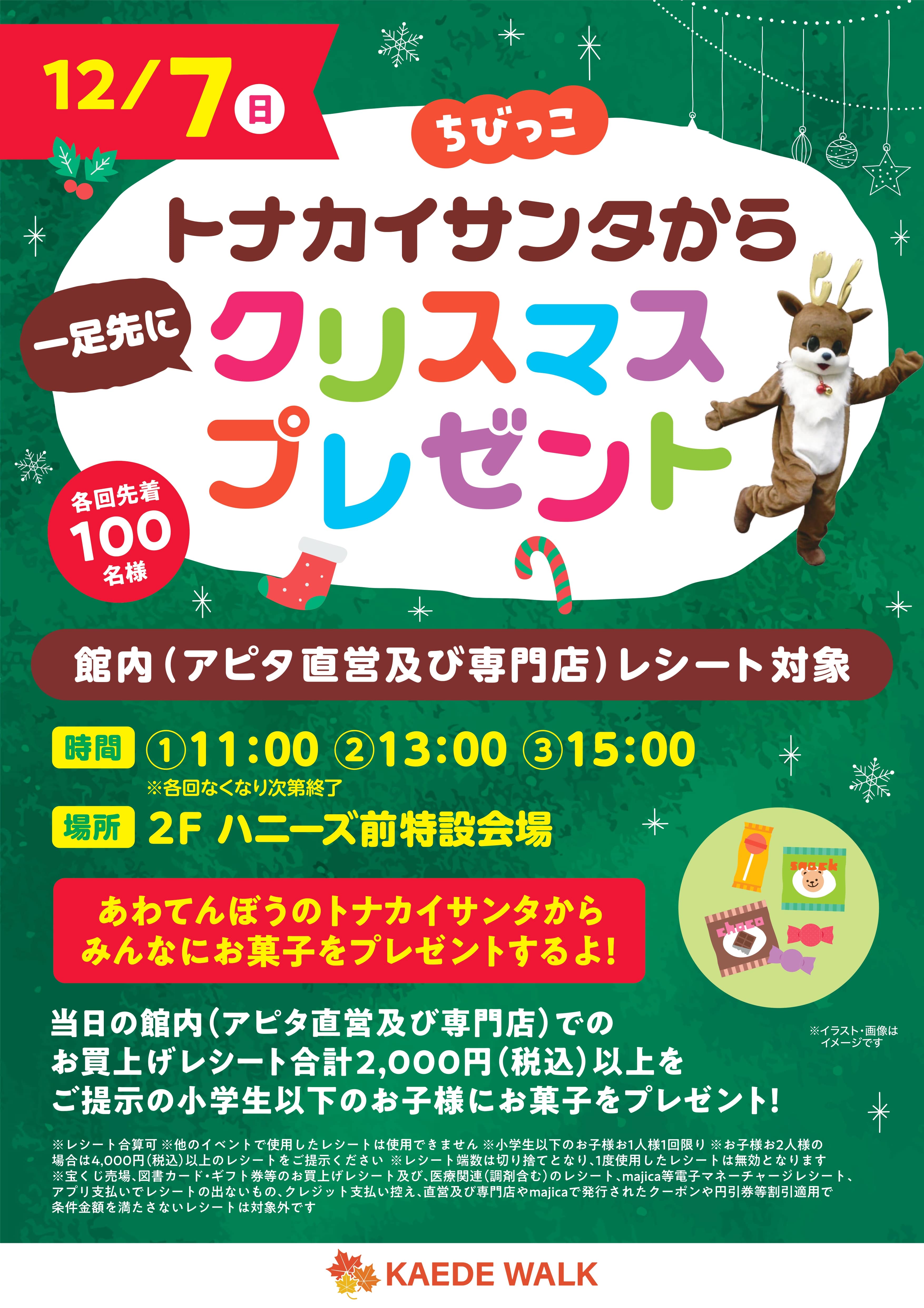 2025年12月7日(日) ①11:00 ②13:00 ③15:00 ※各回先着100名様 ※各回なくなり次第終了