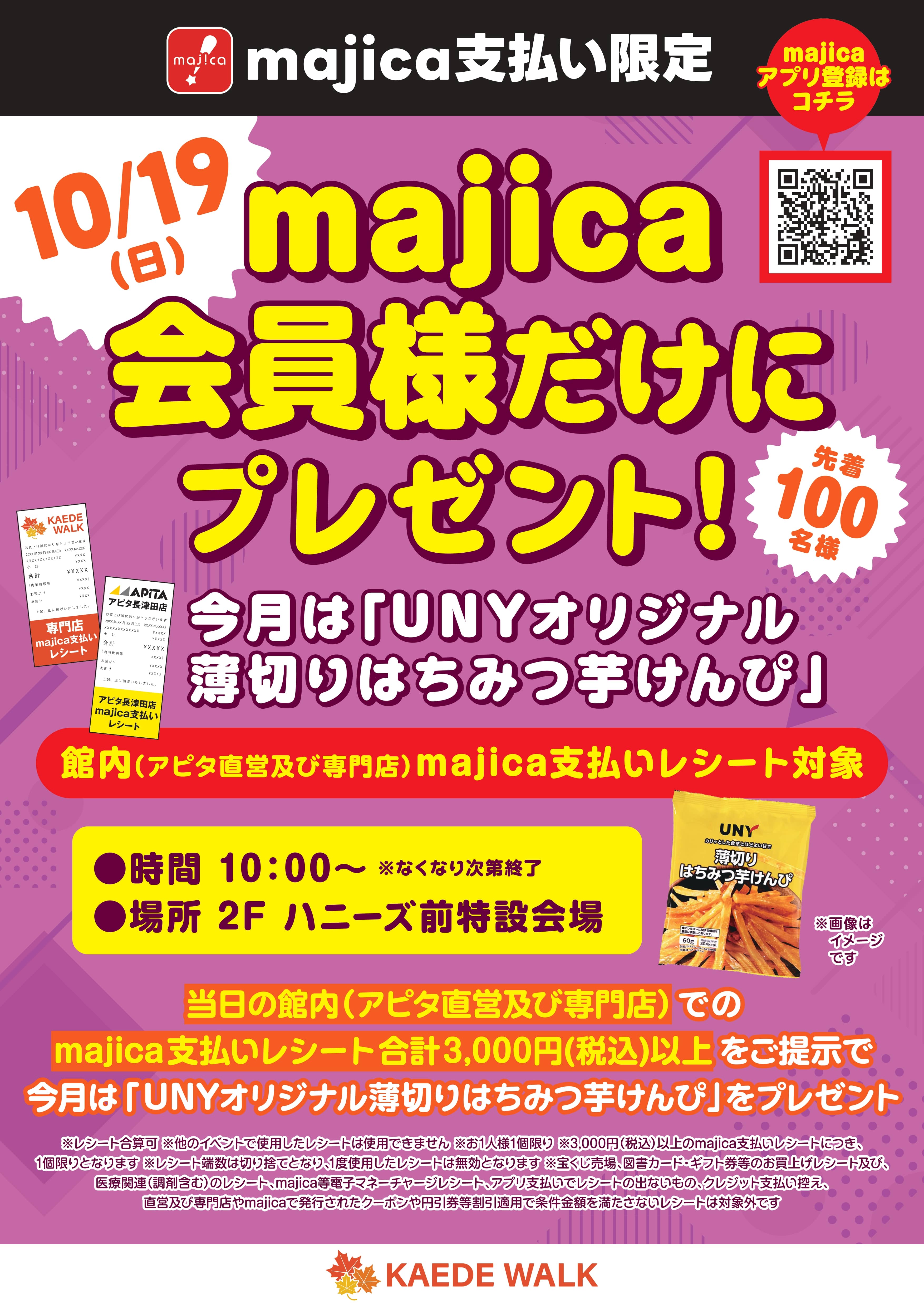 【majica支払い限定】【アピタ直営及び専門店レシート対象】majica会員様だけにプレゼント!!今月は「UNYオリジナル 薄切りはちみつ芋けんぴ」