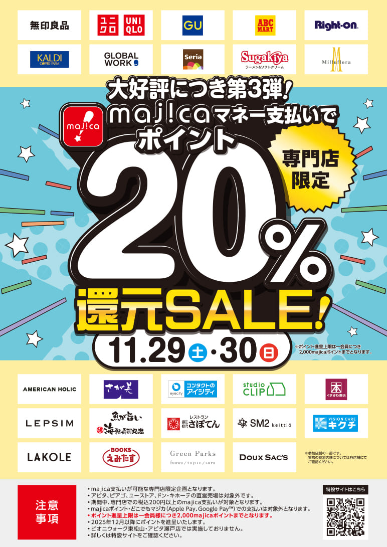 【専門店限定】大好評につき第3弾!majicaマネー支払いでポイント20%還元SALE!