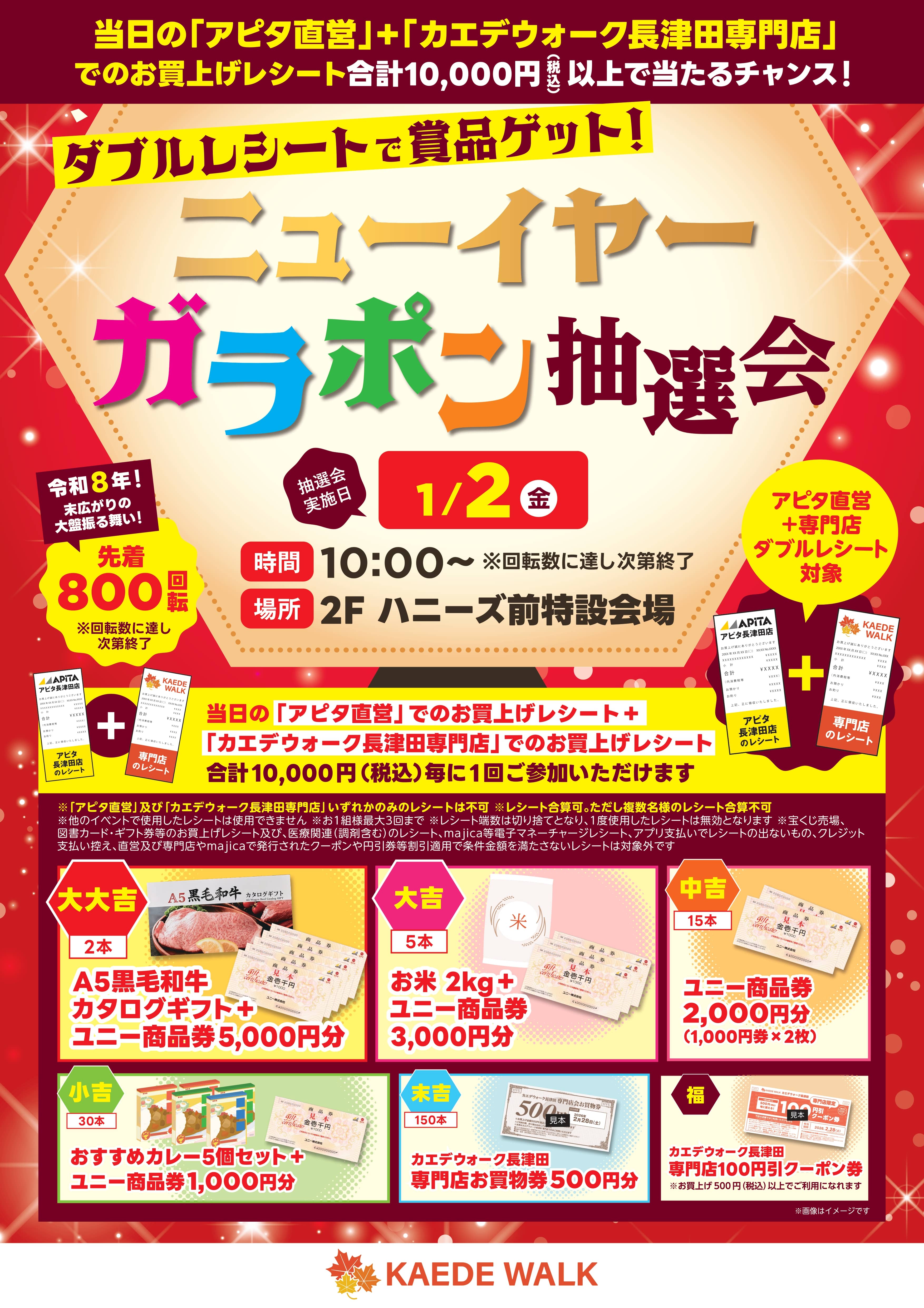 【ダブルレシート企画】【アピタ直営+専門店レシート】新春!ダブルレシートで賞品ゲット!ニューイヤーガラポン抽選会