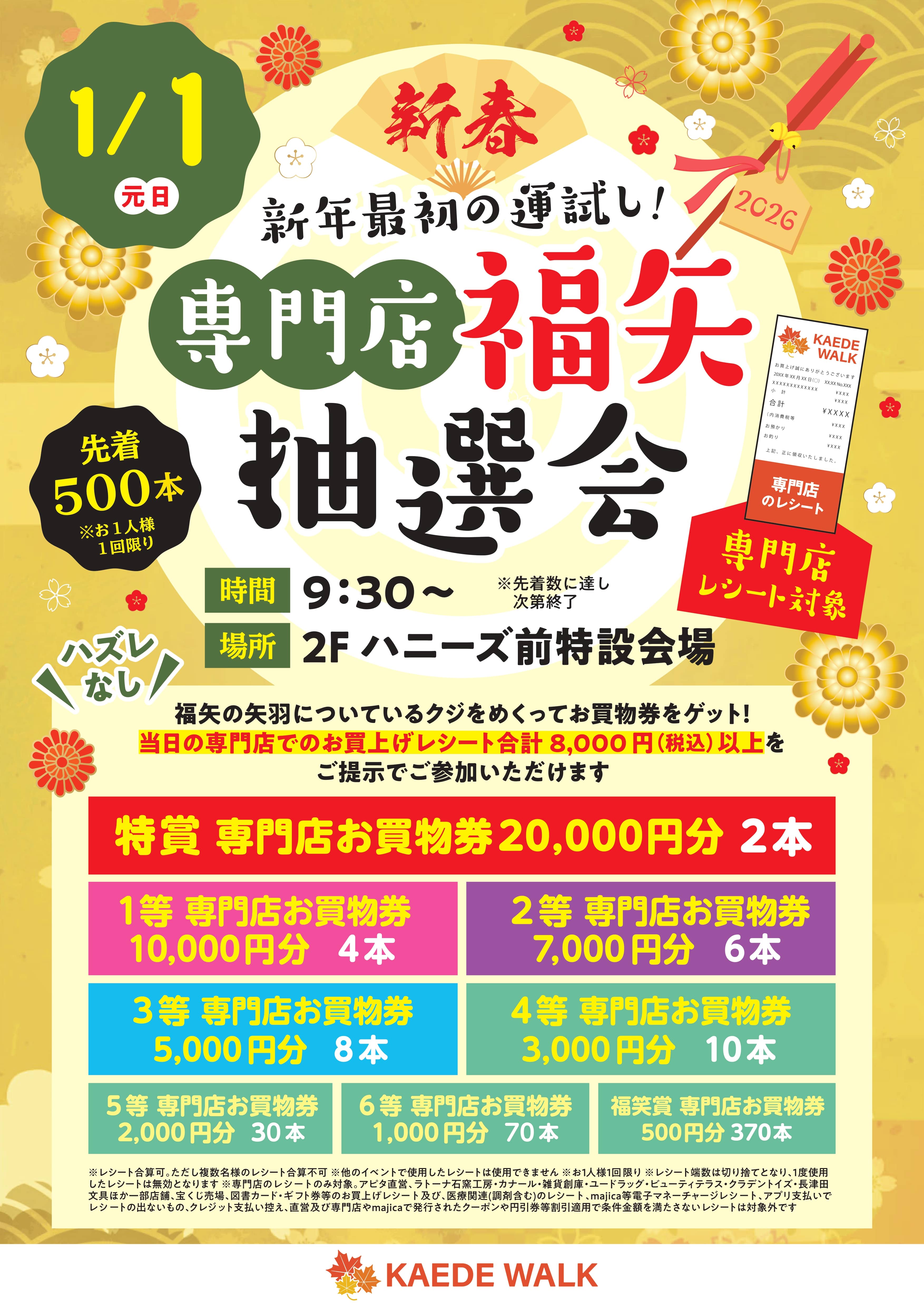 【専門店レシート対象】新春!新年最初の運試し!専門店福矢抽選会