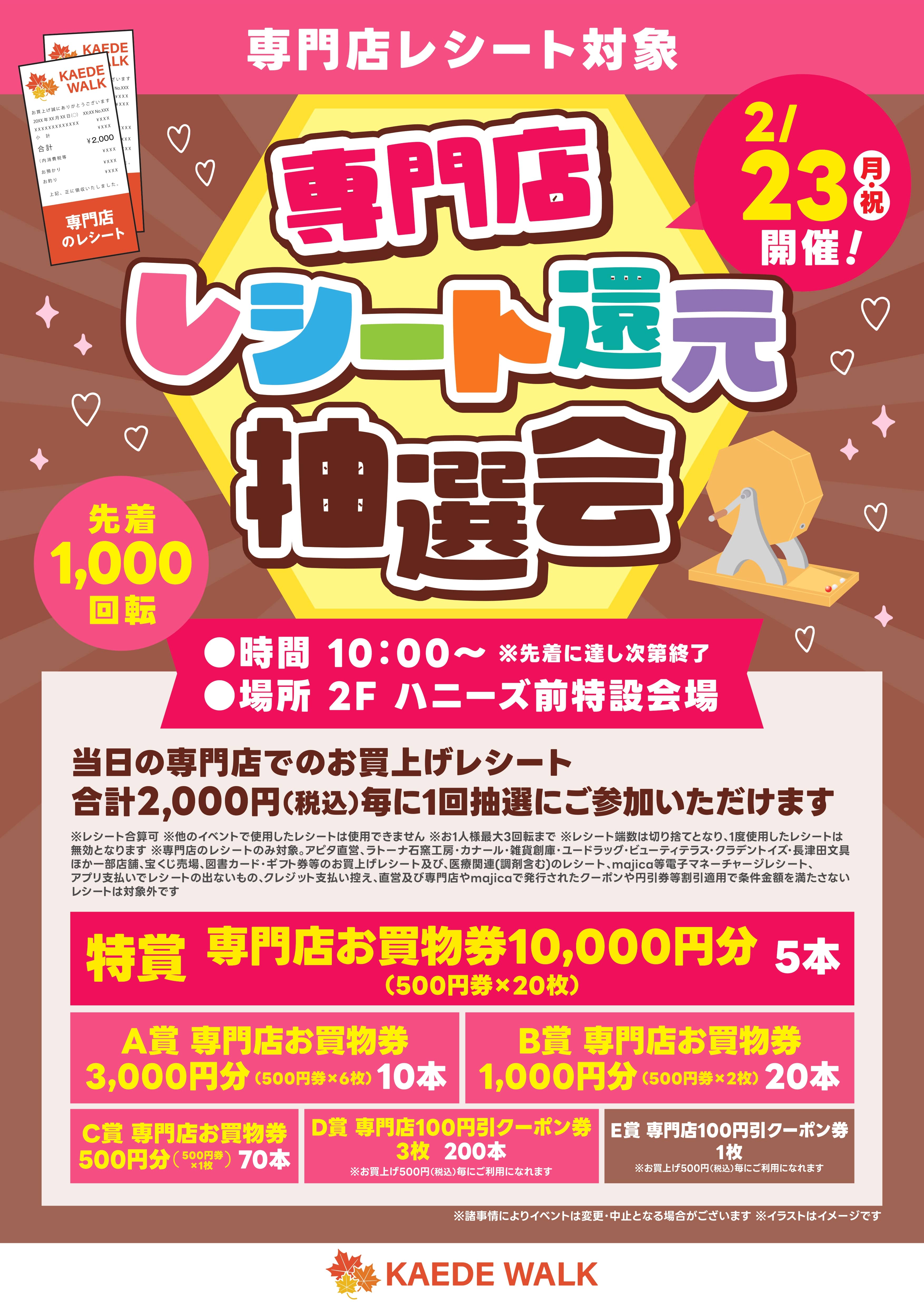 【対象レシート】2/16(月)~28(土)18:00以降のお買上げレシート
