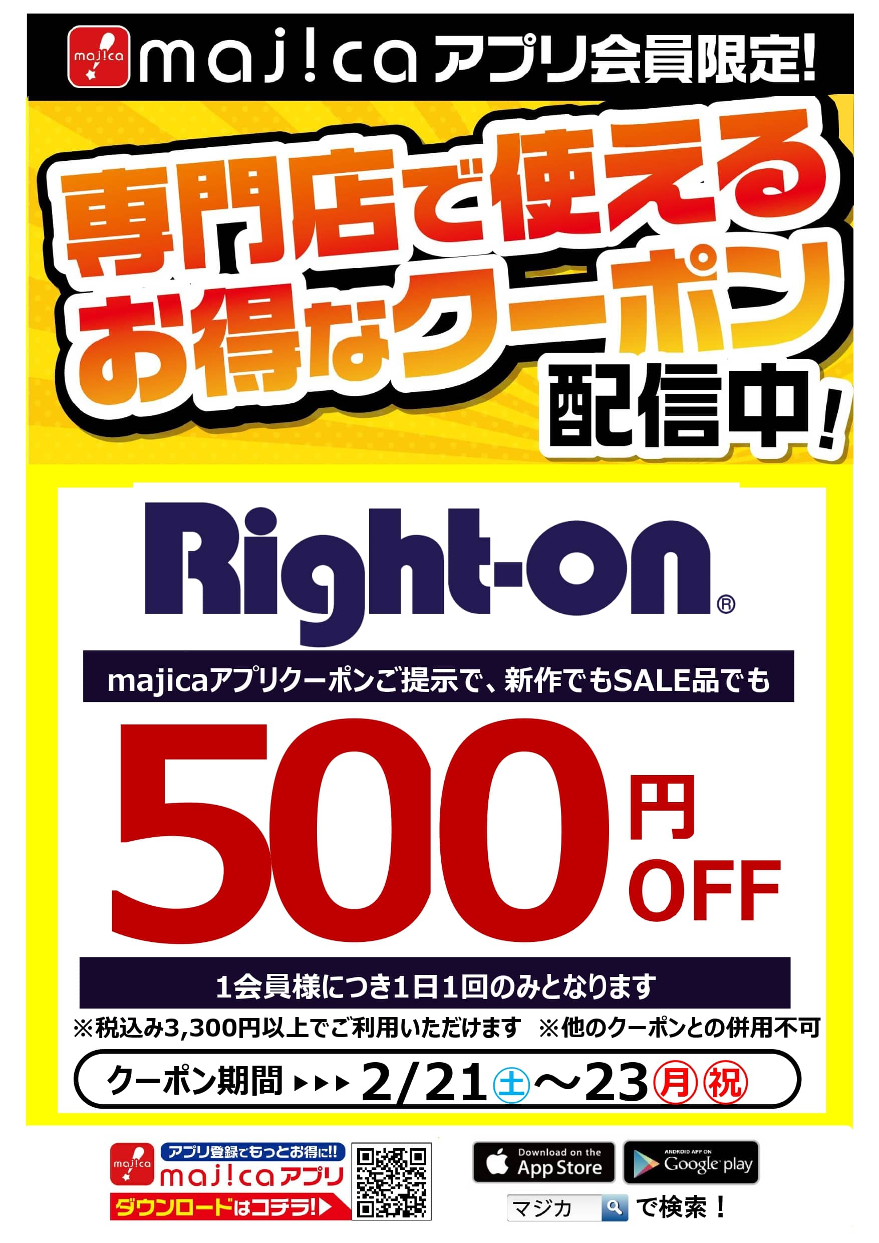 【majicaアプリ会員さま限定】専門店で使えるお得なクーポン配信!ライトオンがお得!
