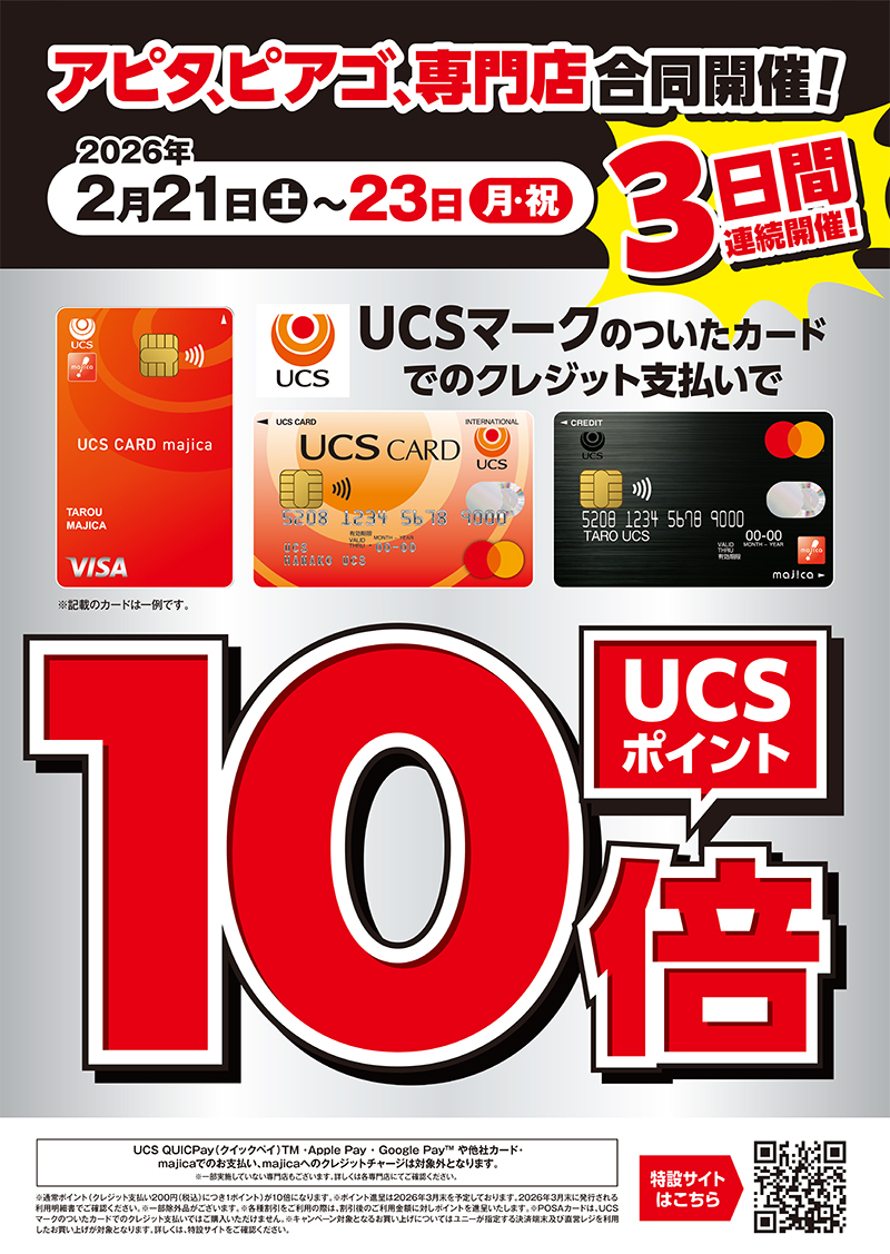 【今月は10日▶18日がよりお得!レシートお得キャンペーン】ユニクロまたはアピタ直営でお買物して専門店へGO!お買上げレシート 1枚1,000円(税込)以上をご提示でお得な特典!