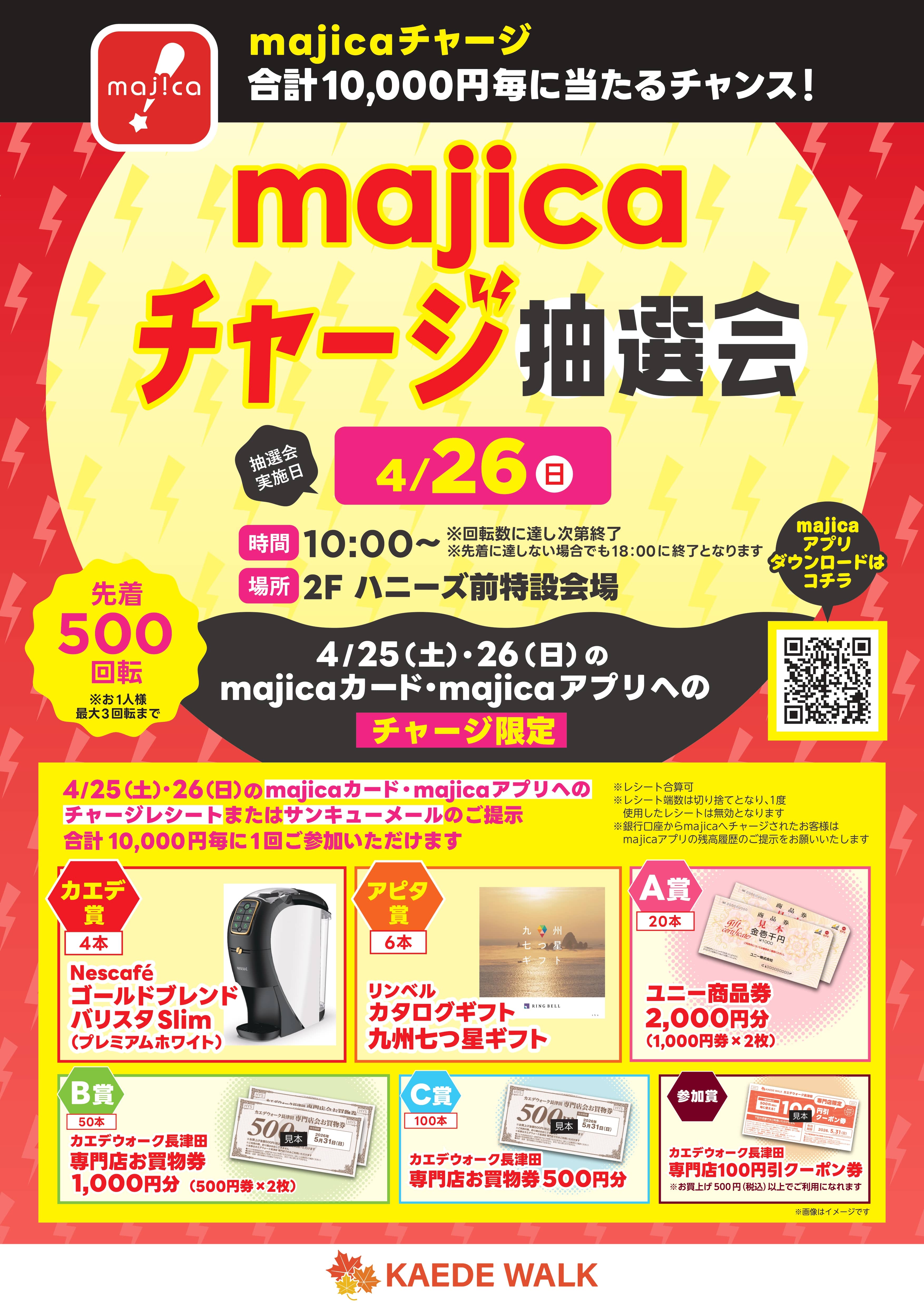 【majicaチャージ対象】4/25(土)・26(日)のmajicaカード・majicaアプリへのチャージ限定 majicaチャージ抽選会!