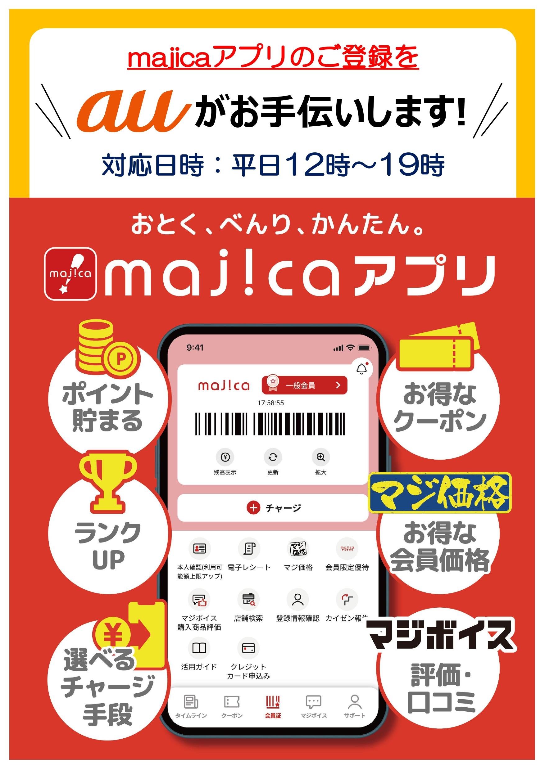 SHOP NEWS auショップ カエデウォーク長津田 ショップニュース あなたのスマートフォンへmajicaアプリのご登録を【au】がお手伝いします! あなたのスマートフォンへmajicaアプリのご登録を【au】がお手伝いします! 2025/10/04 掲載 あなたのスマートフォンへmajicaアプリのご登録を"au"がお手伝いします! 対応日時:平日12時~19時 auショップまでお気軽にご来店ください。 SHOP DATA ショップ名 auショップ ジャンル 携帯電話 固定通信 フロア 1F フロアガイドを見る TEL 0800-700-0914 このショップの詳細 SHOP NEWS ショップニュース チュチュアンナグランデ きれいを叶える★チュチュア... view more チュチュアンナグランデ 冬を先取り♪「運命のブラ」... view more チュチュアンナグランデ 透明感レベルアップ!大人気... view more チュチュアンナグランデ 今だけの可愛さ!ハロウィン... view more ABC-MART 【雑誌LEE監修】スタイリ... view more 若鯱家 10/10(金)~『USポ... view more ノジマ 「エコかな」 ノジマが補助... view more JINS 対象商品が一律20%OFF... view more