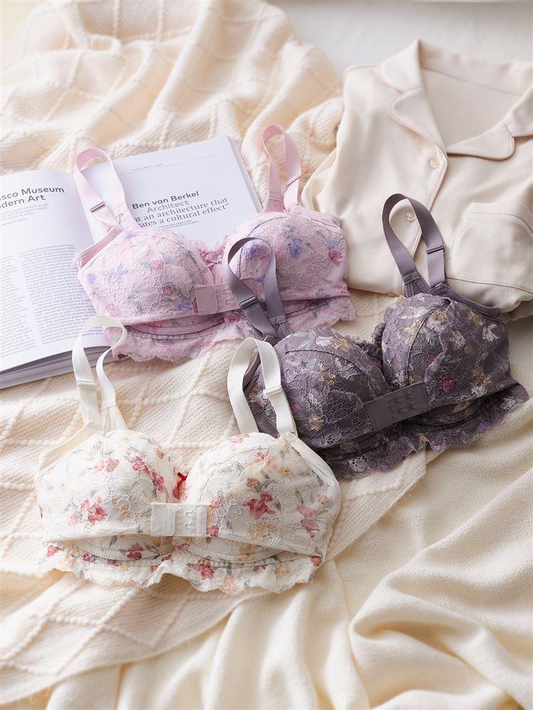 新しく登場したデザインは、繊細なレースにほどこされた花柄プリントがエレガントな雰囲気。