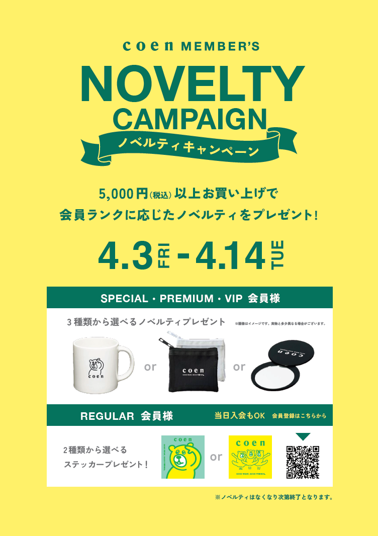 会員様限定!ノベルティキャンペーン...
