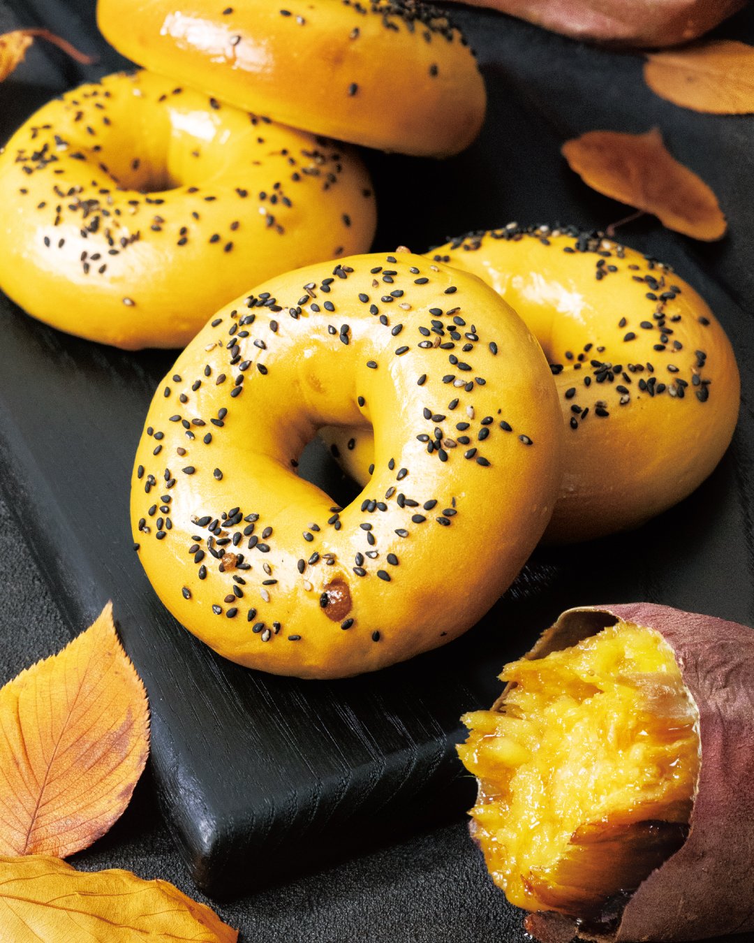鹿児島県産の安納芋と黒蜜チップを練り込み、密たっぷりの焼き芋をイメージしてつくった期間限定のベーグルです。