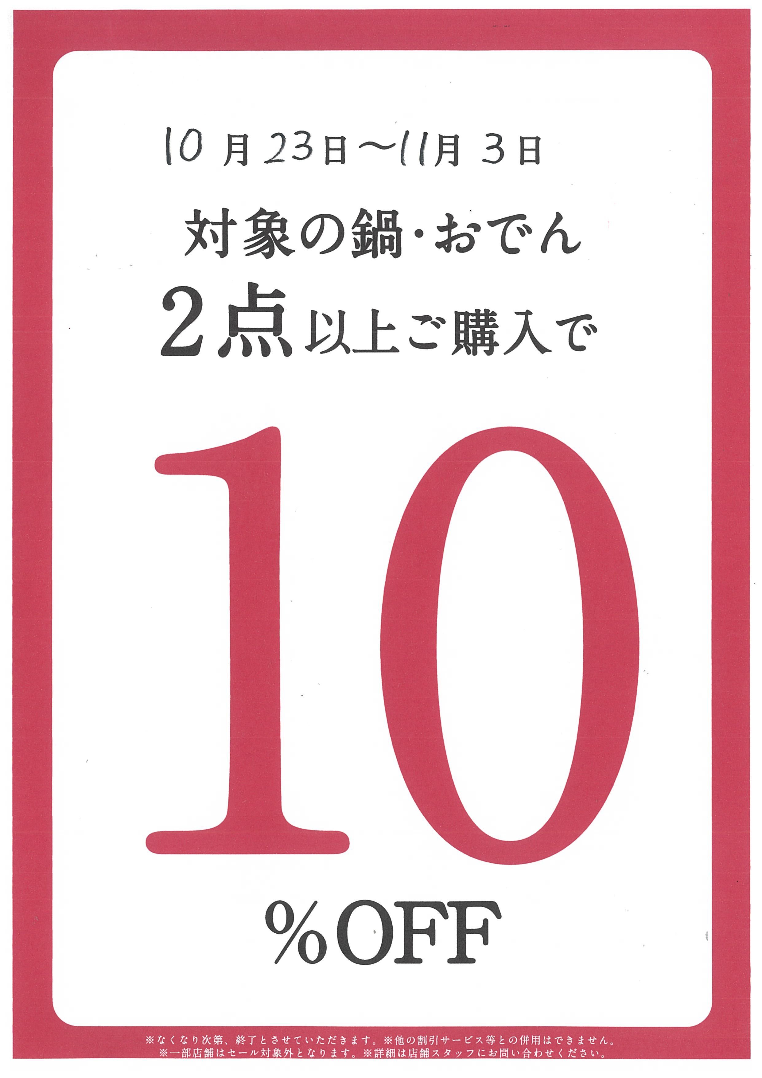 SHOP NEWS 久世福商店 けやきウォーク前橋 ショップニュース 鍋つゆ&おでんバンドルセール 鍋つゆ&おでんバンドルセール 2025/10/23 掲載 *ショップニュース 2点以上の購入で10%OFF 寒くなってきた今にうれしい、お得な10%OFFをぜひご利用下さい。 SHOP DATA ショップ名 久世福商店 ジャンル 和食材 フロア 1F フロアガイドを見る TEL 027-226-5840 このショップの詳細 SHOP NEWS ショップニュース SM2 keittio ゆべしさんコラボアイテム第... view more 前橋ロフト ポチ袋そろってます! view more 前橋ロフト お米をおいしく! view more 前橋ロフト ハロウィンフーズそろってま... view more ABC-MART GRAND STAGE/ABC-MART/Charlotte 運動の秋、New Bala... view more 島村楽器 【電子ピアノ】お得なプレゼ... view more 天丼 てんや けやきウォーク前橋「限定ラ... view more ミスパリ 季節の変わり目に 一度お身... view more