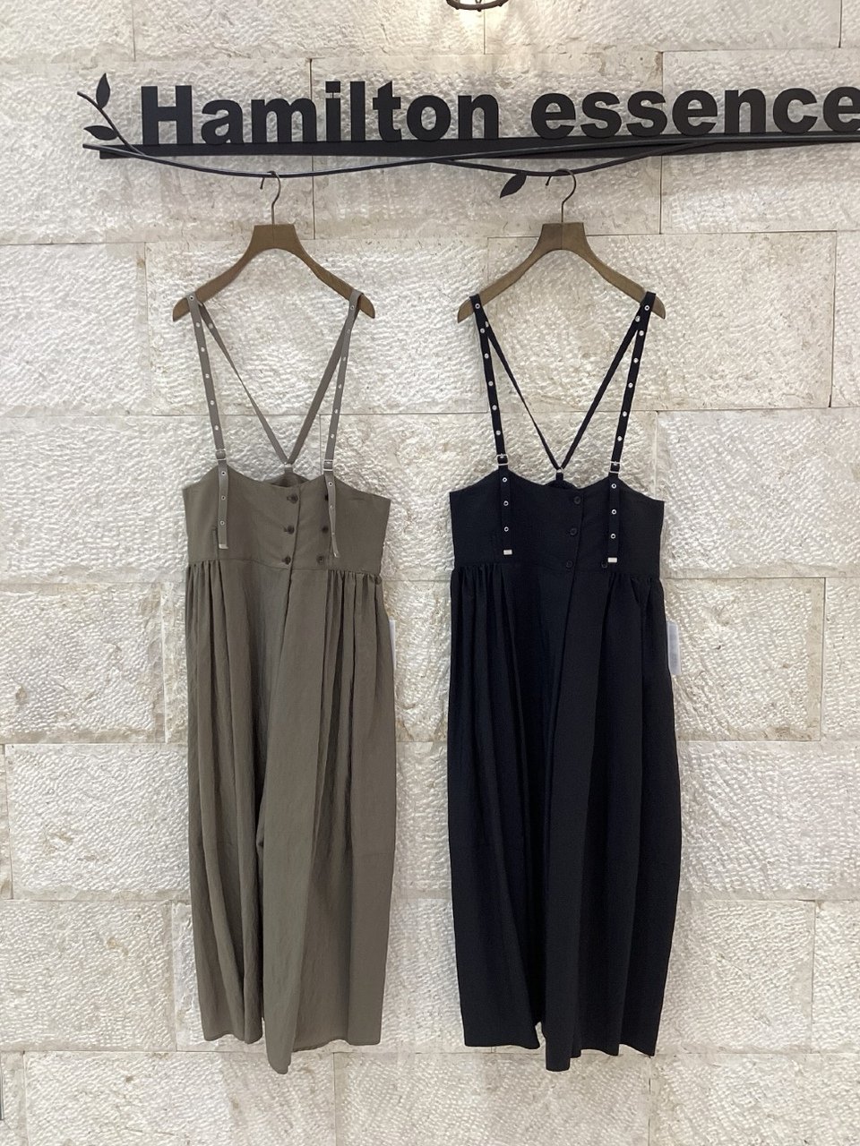 ナイロンリヨセルの軽やかな生地感のサスペンダースカートは、