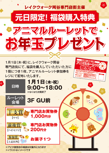 元日限定!福袋購入特典 アニマルルーレットで お年玉プレゼント