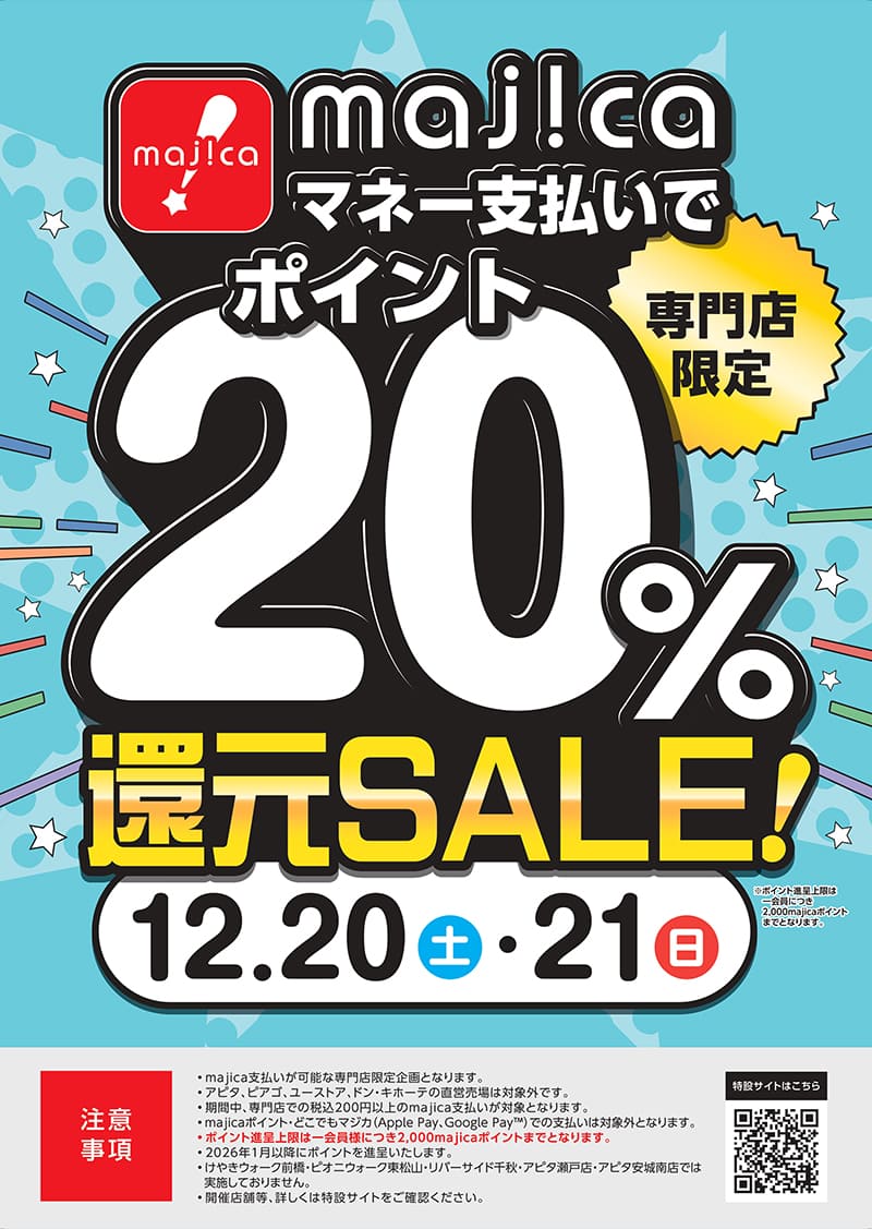 【専門店限定】majicaマネー支払いでポイント20%還元SALE!