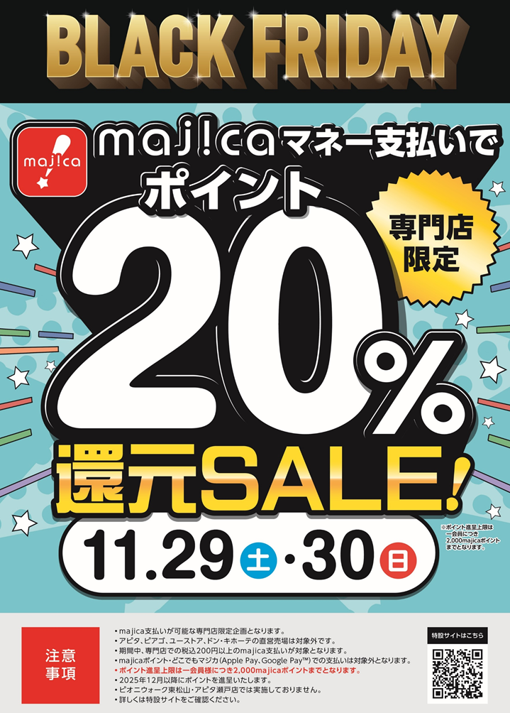 【専門店限定】大好評につき第3弾!majicaマネー支払いでポイント20%還元SALE!