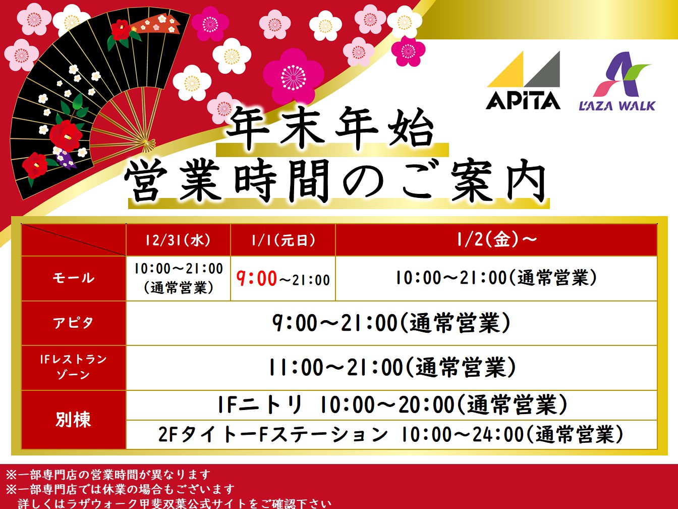 年末年始の専門店営業時間のご案内【12月21日更新】