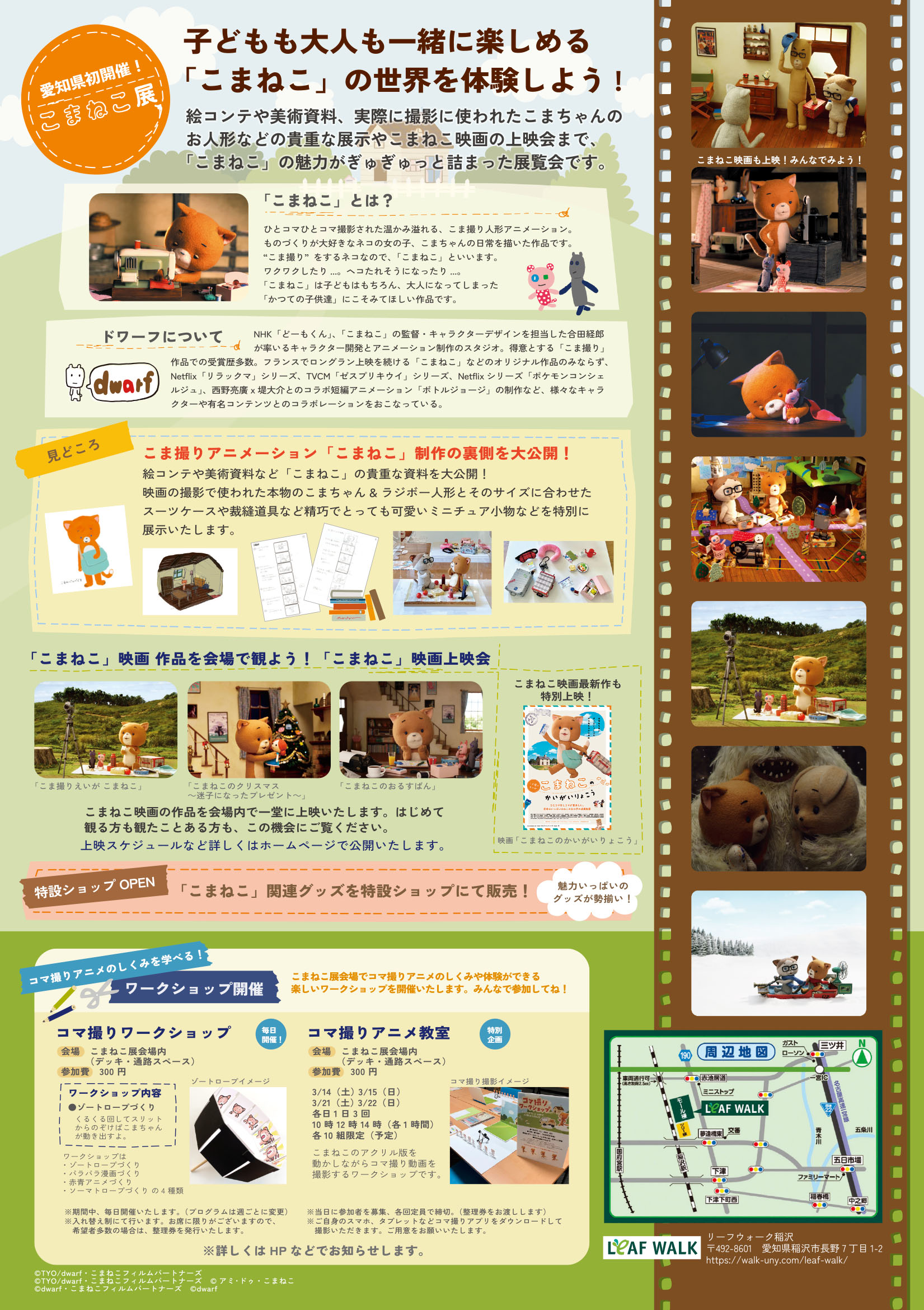 こまねこ映画上映会、パネル展示、ワークショップ、スタンプラリー、