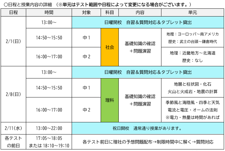 ・学年末テスト対策集団授業について