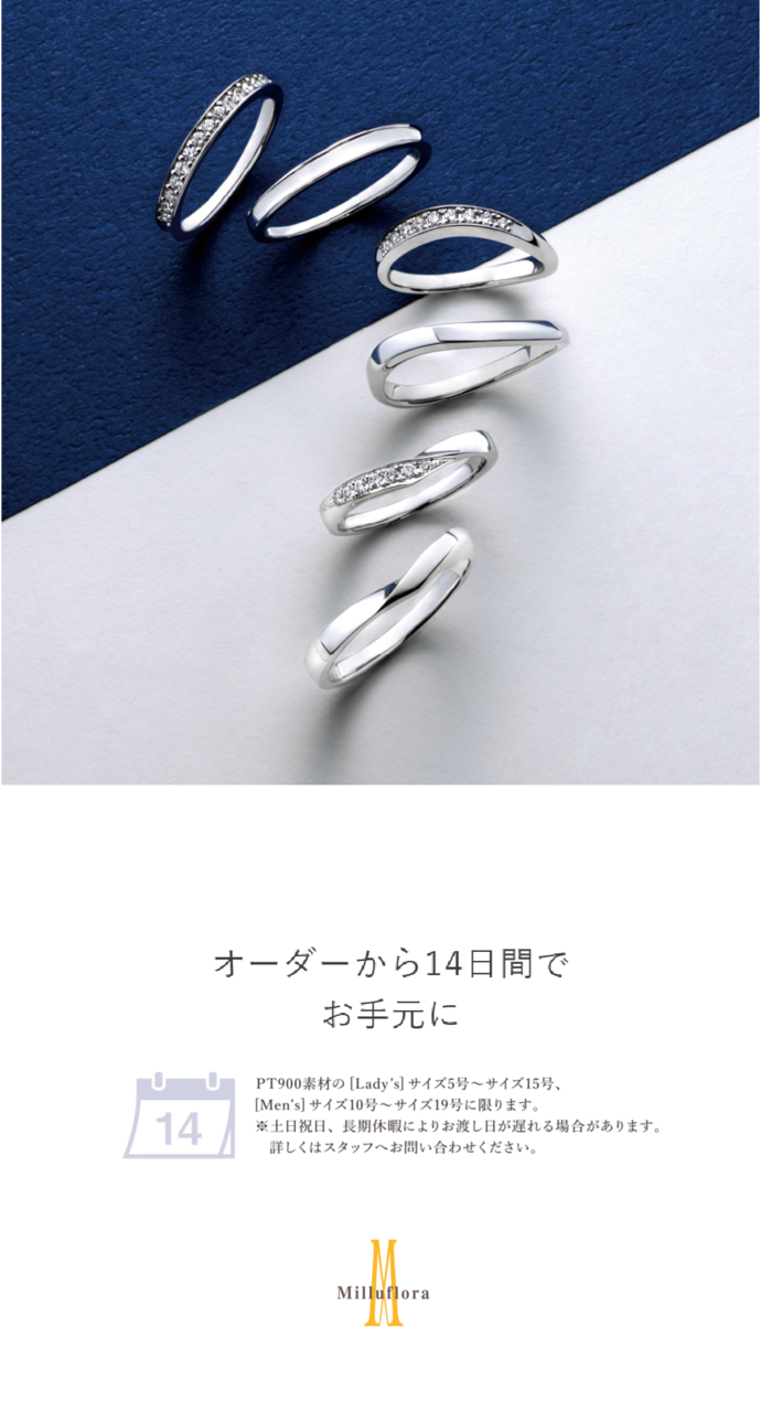 ③エンゲージもセットで選べる マリッジリングと一緒につけられるデザインを選ぶことができます。詳しくは店頭スタッフまでお気軽にお問い合わせください。