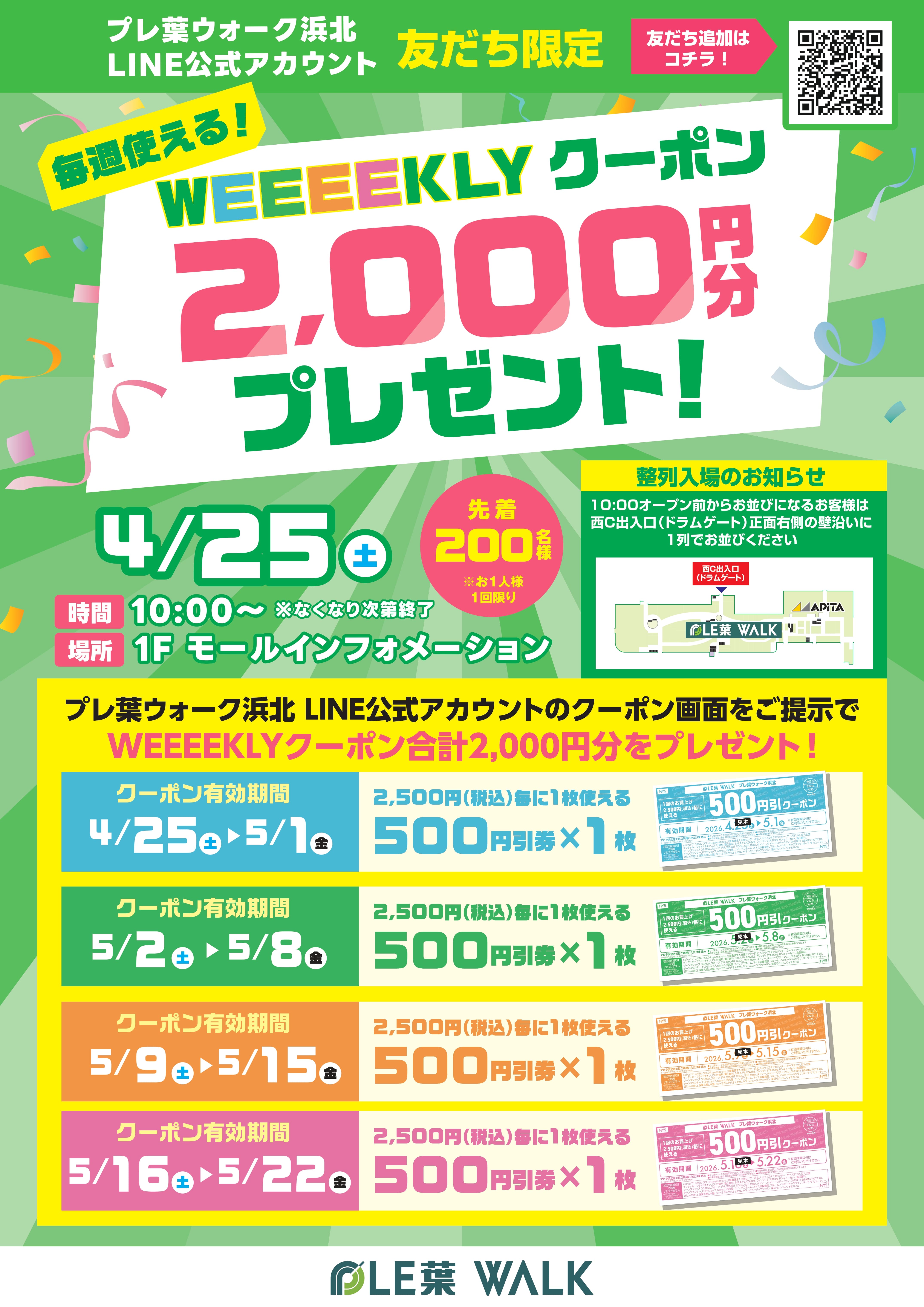 毎週使える!WEEEEKLYクーポン2,000円分プレゼント!