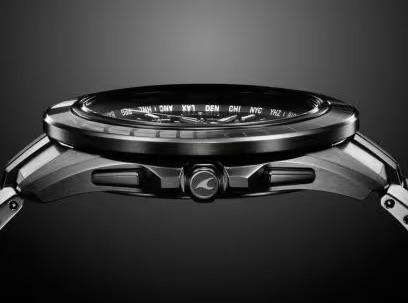 上下で異なるカッティングラインの美しいサファイアガラスベゼルが特徴で