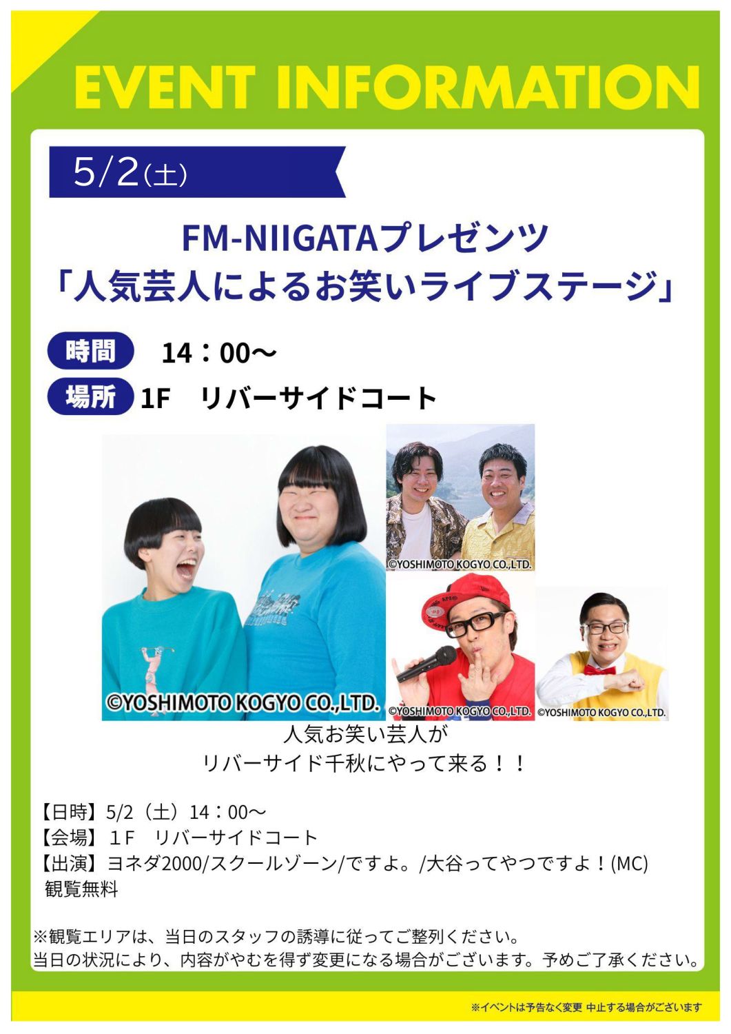 FM-NIIGATAプレゼンツ 人気芸人によるお笑いステージライブ