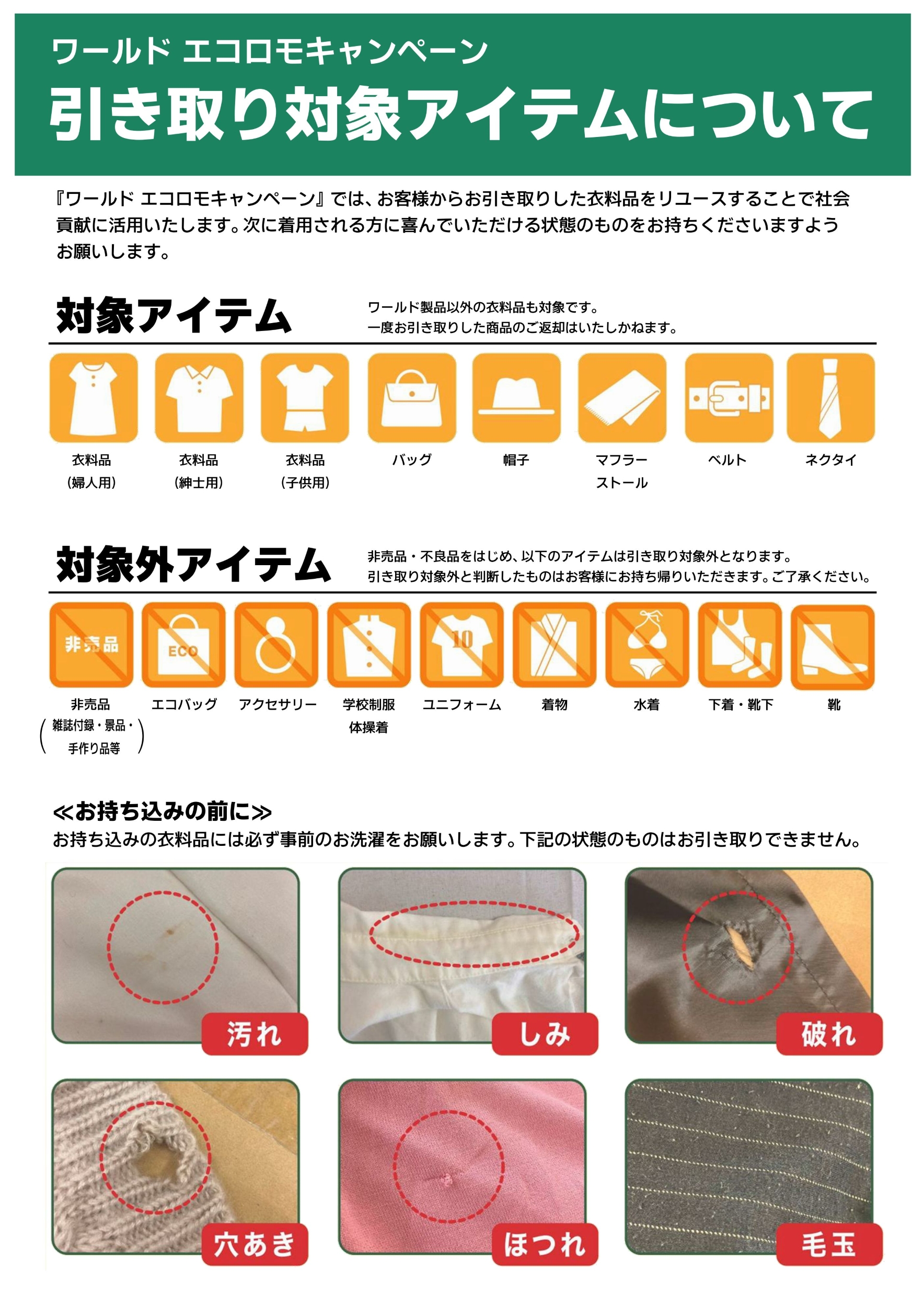 衣料品引き取り「ワールド エコロモキャンペーン」
