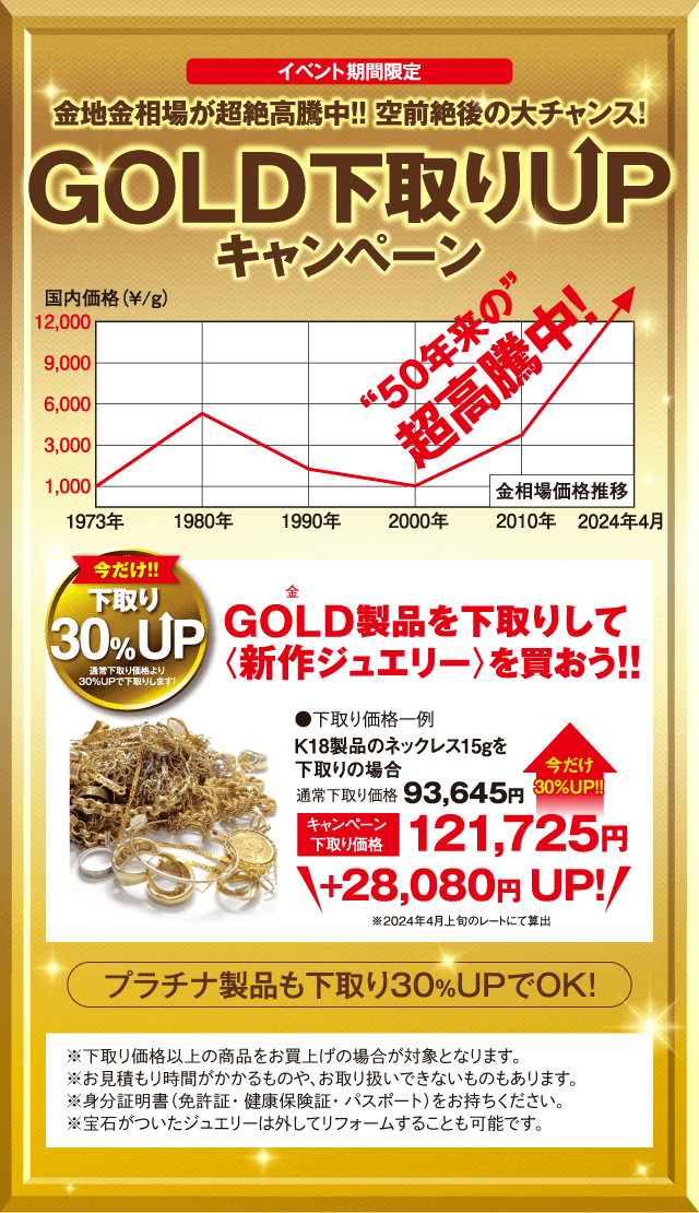 ゴールド・プラチナ下取りサービス 30%UPキャンペーン実施中!