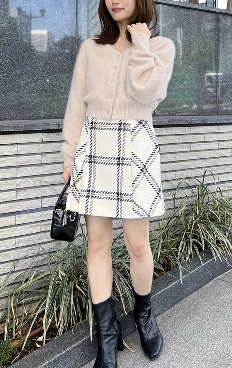 【今季らしい華やかな彩りが魅力的な大人気のロービングチェックミニスカート】