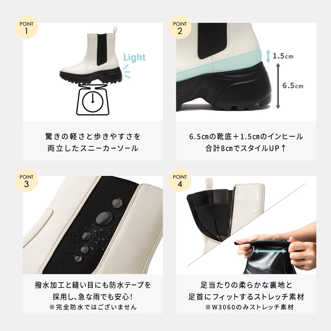 ④足当たり柔らかな裏地と足首にフィットするストレッチ素材 ※W3060のみストレッチ素材