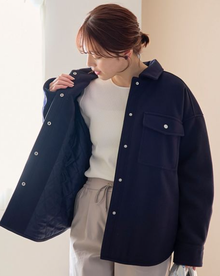 風を通しにくいメルトン生地に中綿を入れ、見た目以上にあたたかく快適な着心地を実現。