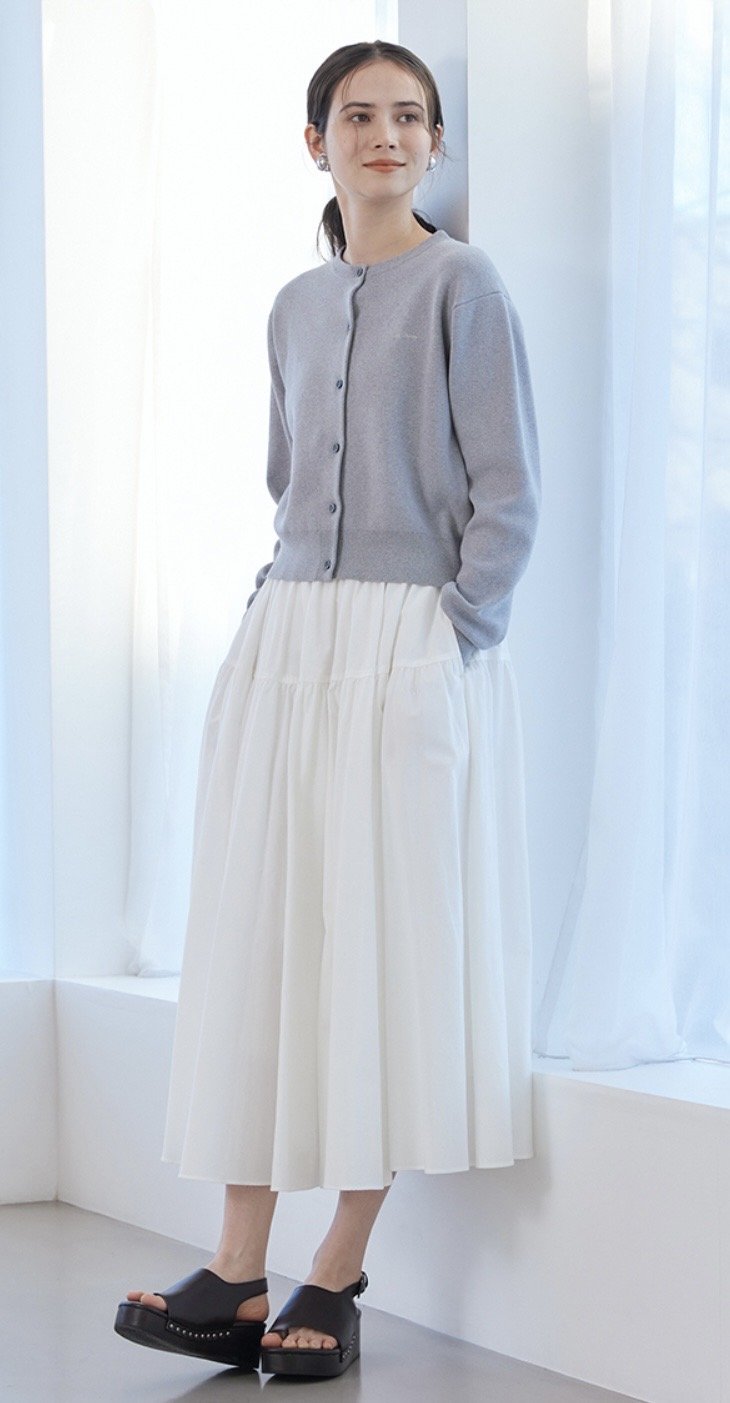 着丈をやや短めに設定した、長袖カーディガン。サイズ感を細やかに設定することで、シンプルながらも、着た際にこなれたフォルムが出るようこだわった一枚。