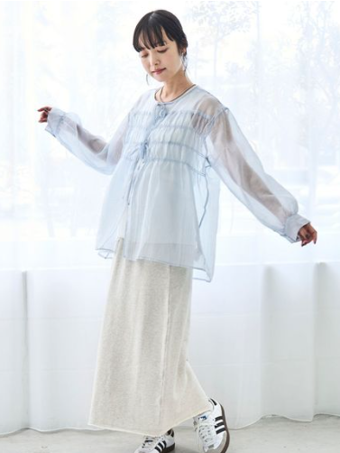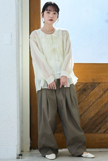 デニム合わせで甘さを抑えた大人カジュアルに、ワイドイージーパンツと合わせてリラックス感のあるスタイルにもおすすめです。