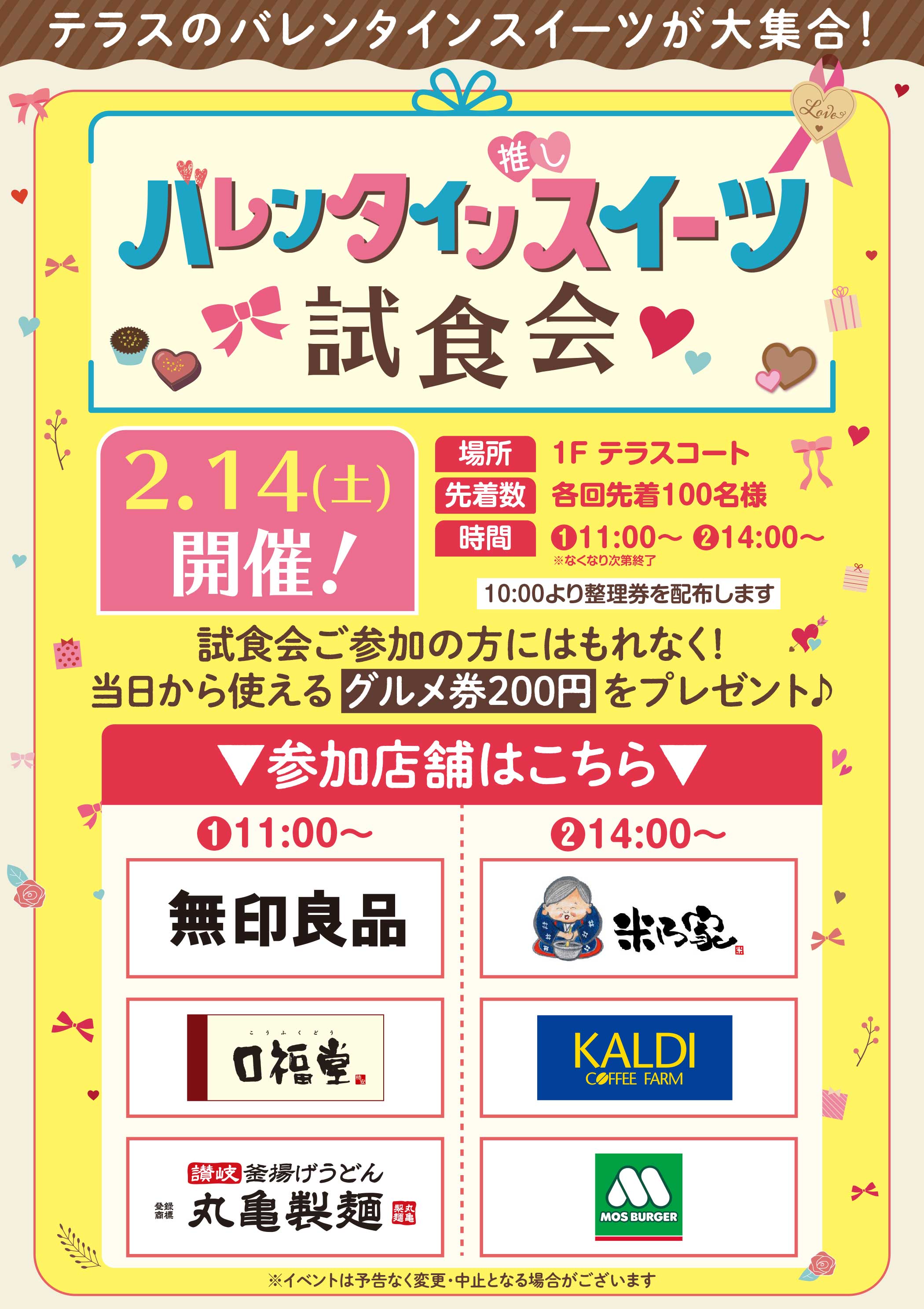 2月14日(土)開催! ※各回先着100名様 ※なくなり次第終了