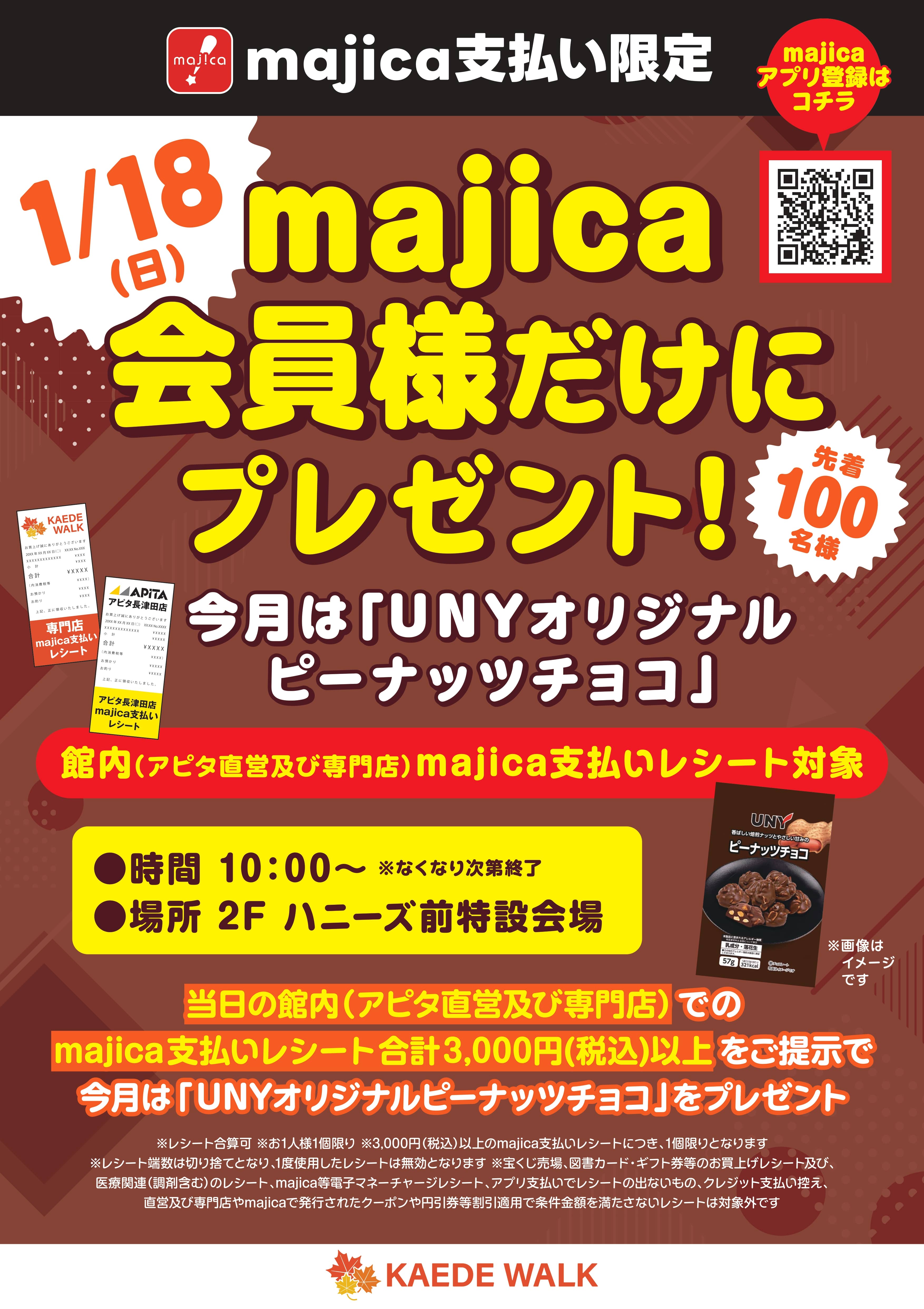 【majica支払い限定】【アピタ直営及び専門店レシート対象】majica会員様だけにプレゼント!!今月は「UNYオリジナル ピーナッツチョコ」