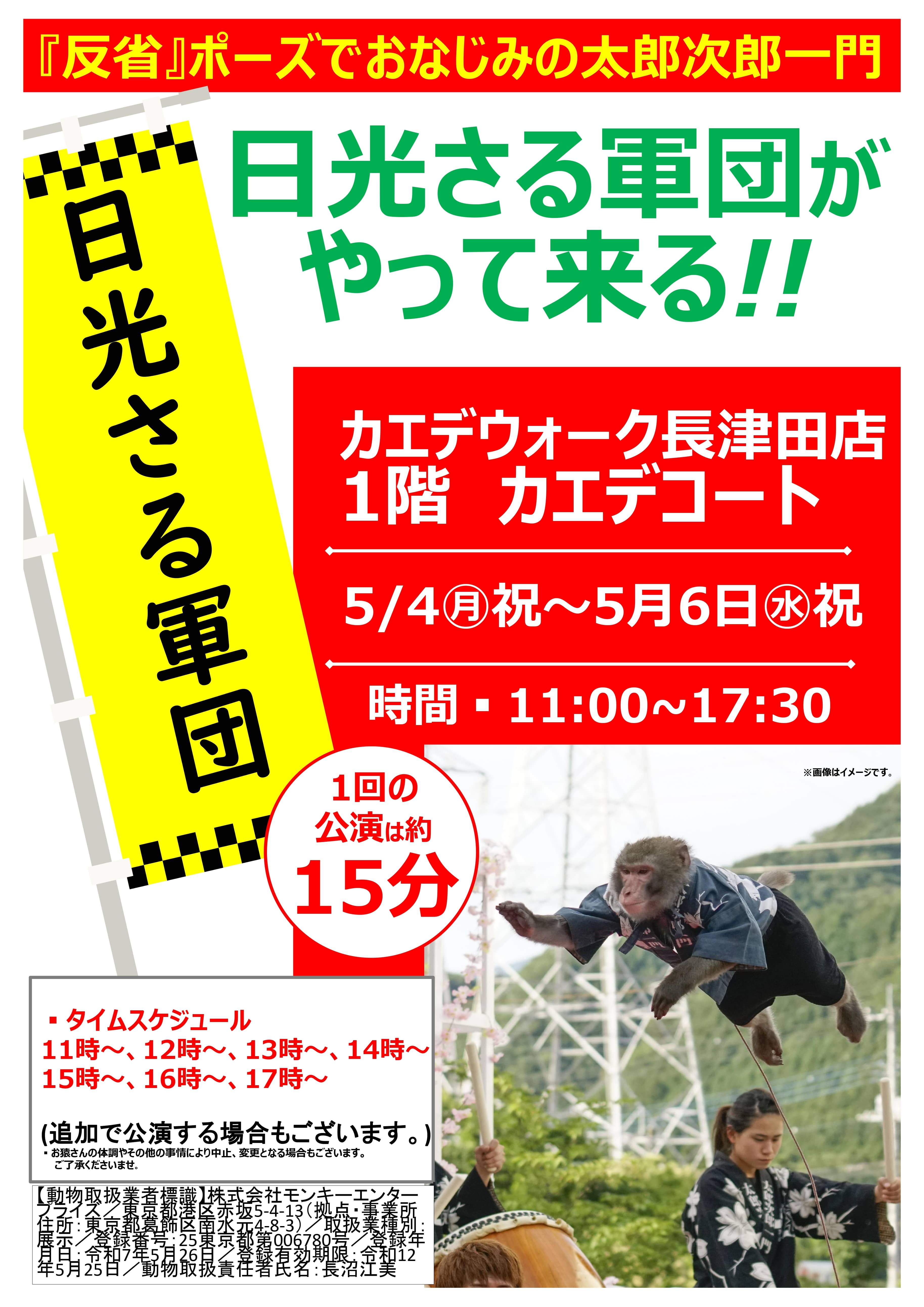 【観覧無料】『 反省 』 ポーズでおなじみの太郎次郎一門 日光さる軍団がやって来る!