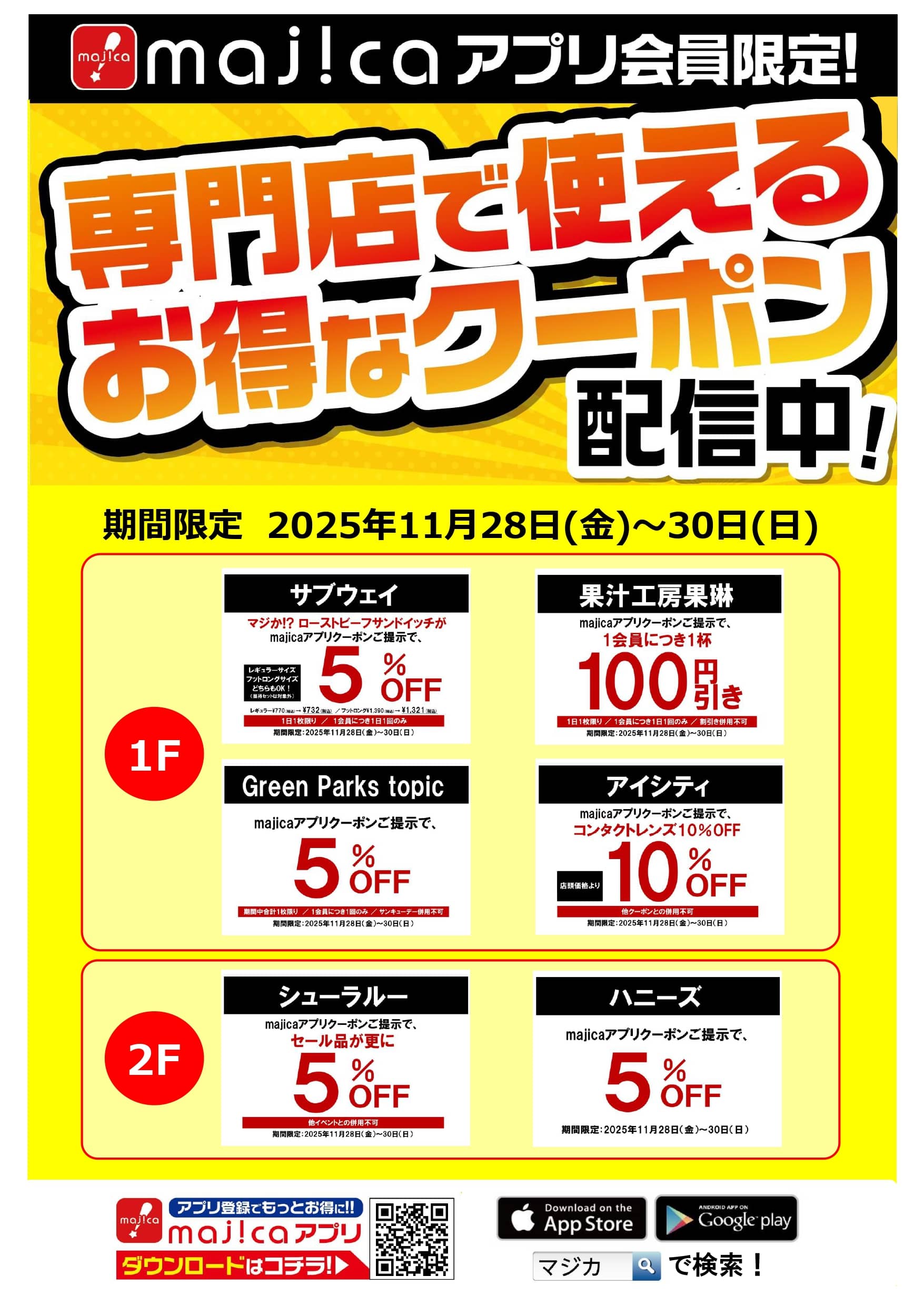 【majicaアプリ会員さま限定】専門店で使えるお得なクーポン配信!