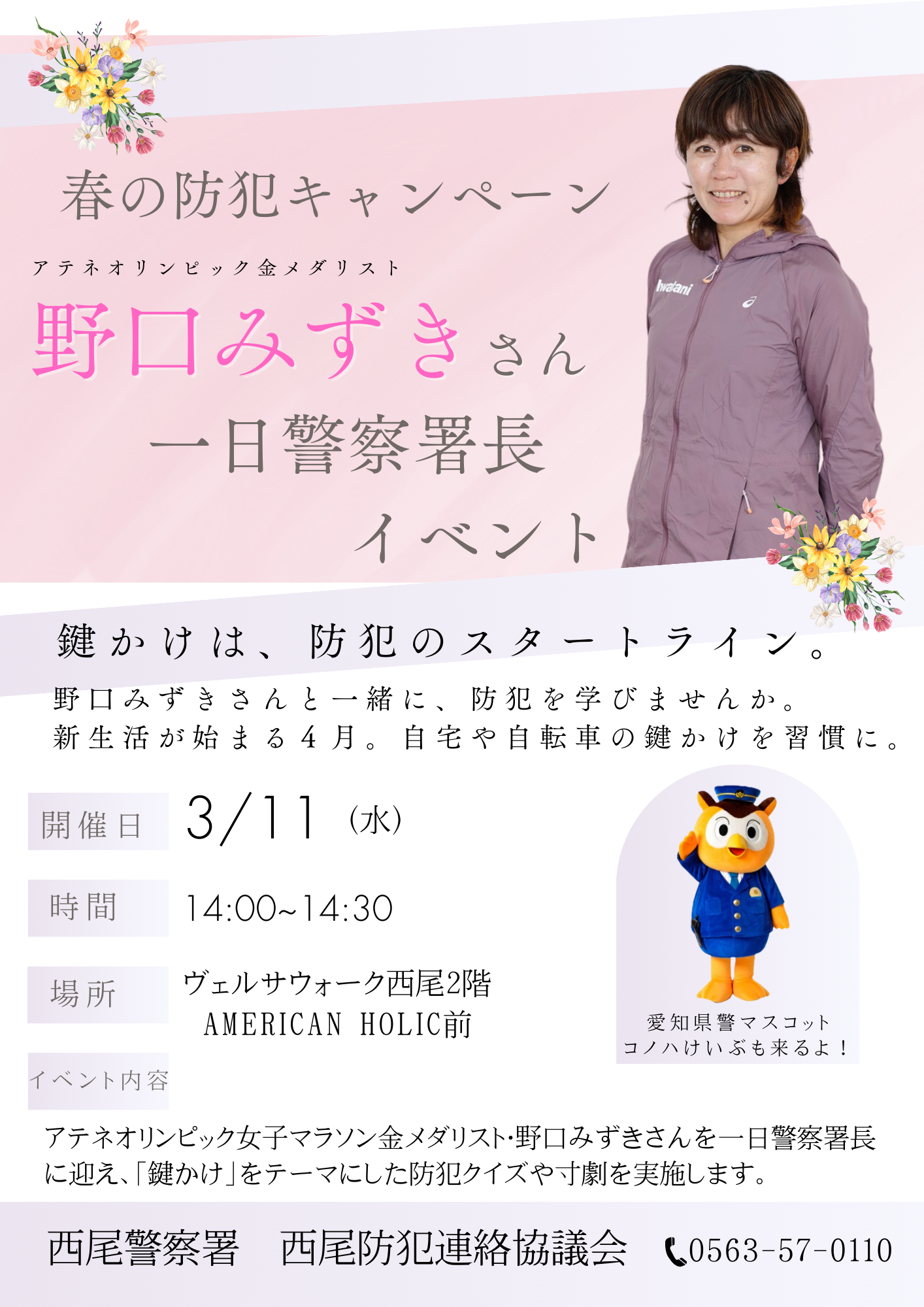 春の防犯キャンペーン 野口みずきさん1日警察署長イベント
