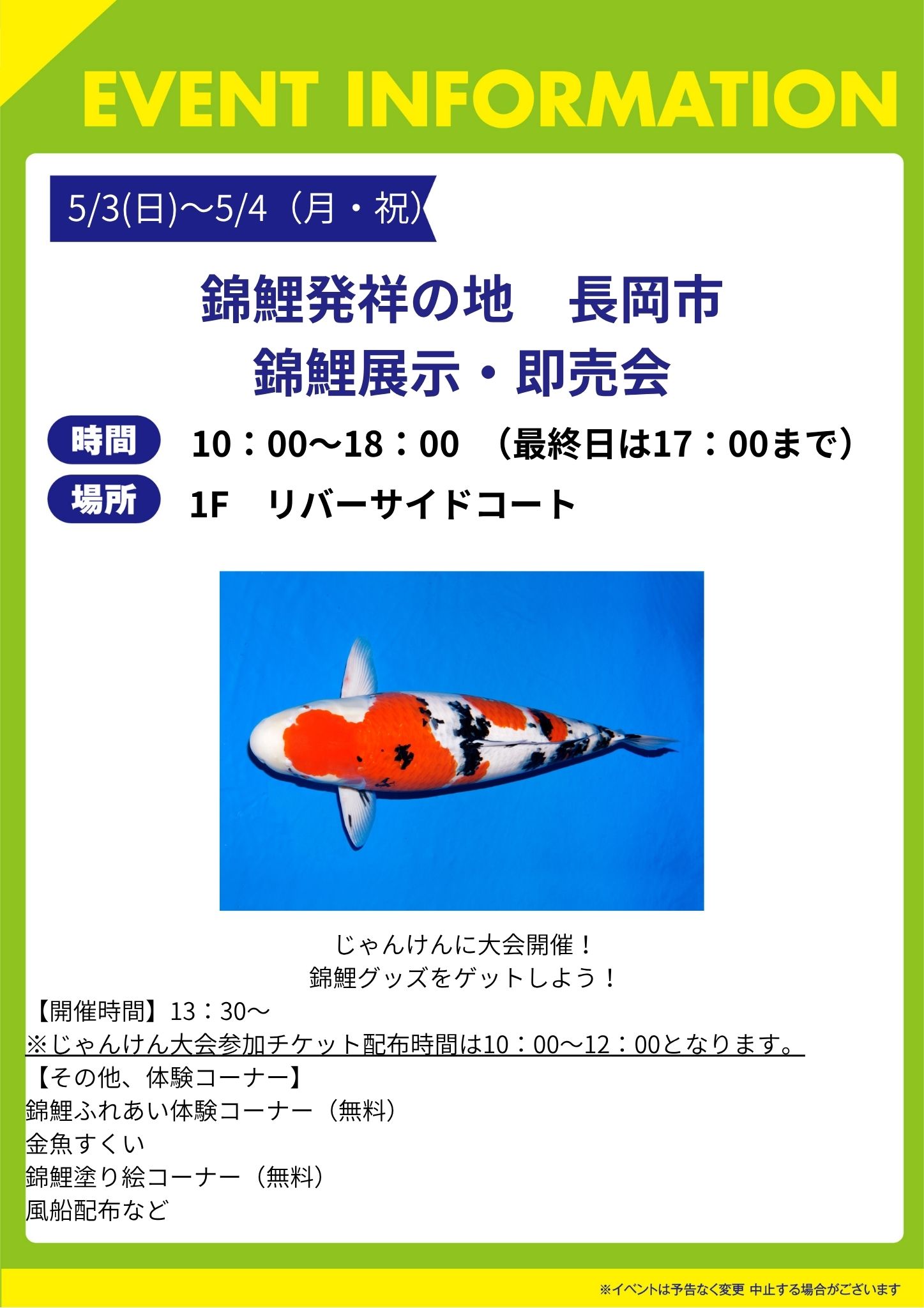 錦鯉発祥の地、長岡市 錦鯉展示・即売会